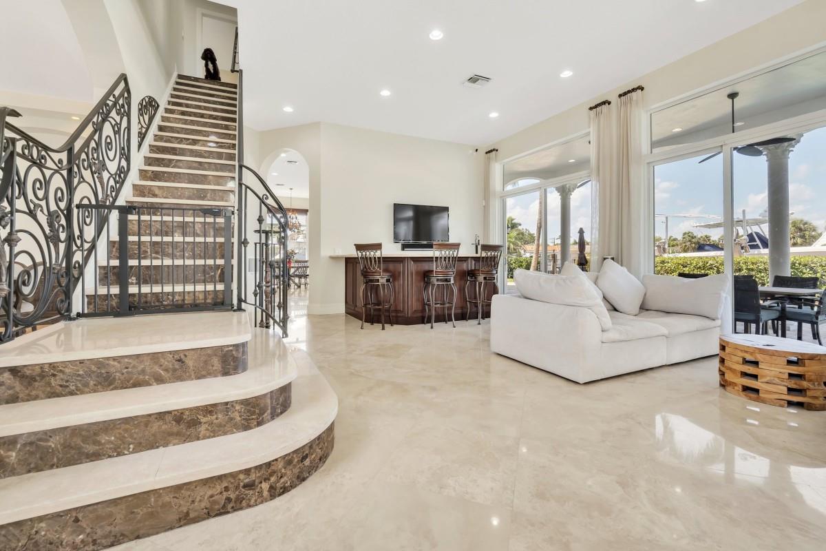 N. Broward's finest waterfront smart home on a deep point lot with 170 ft of frontage & NO fixed bridges, 15 minutes to the Ocean. 5-bedroom + office & billiard room, 6.5-bath residence boasts a large Chef's Kitchen, & Custom Bar. Soaring 12' ceilings & Full Impact Glass for expansive water views. New dock, Batter Piles, 20,000lb. Boat Lift, Jet Docks, 55' heated pool, & a custom elevator. Marble & engineered hardwood throughout. Freshly painted & FBC Rated & Positive Elevation. Pompano Beach is Booming!