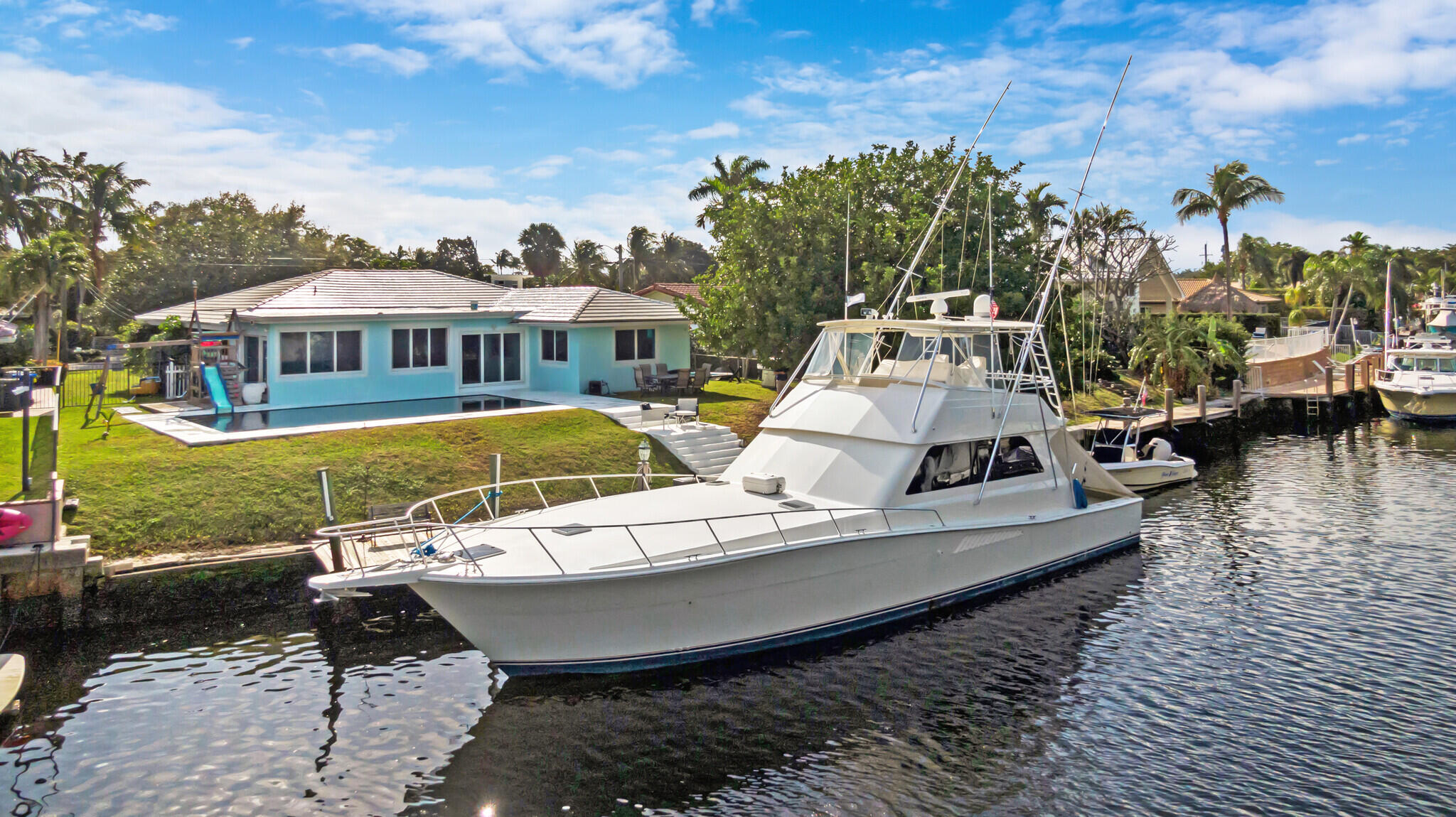 BOATERS' DREAM AVAILABLE NOW!! 80' dock in multi-million $ Hillsboro Harbor. NO FIXED BRIDGES, 5 min TO THE INLET. 4bedrooms, OPEN CONCEPT, WOOD FLOORS, HUGE FRONT YARD, 1 car garage. Great home for entertaining all friends and family. Modern kitchen, 2 refrigerators, GORGEOUS POOL w/slide & play structure for the kids ! FLEXIBLE TERMS - Hillsboro Harbor is an exclusive boating area. THREE GREAT PARKS in nearby: DeGroff (nice water front, trees, playground, gazebo, benches, walking path and sandy beach perfect for launching a paddle board) Dan Witt (volleyball, baseball, basketball, football, tennis, soccer, sports camps) McDonough (playground, separate toddler park, utility hall w/kitchen, restrooms, large field, tennis, volleyball). DON'T MISS this opportunity to become part of