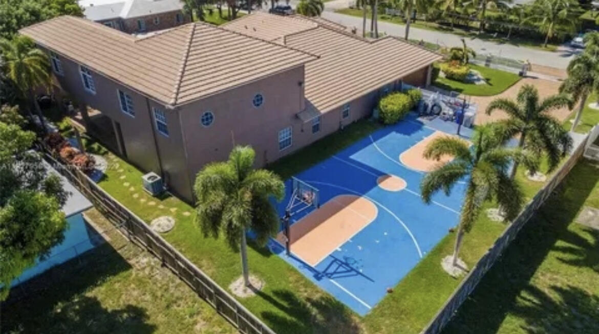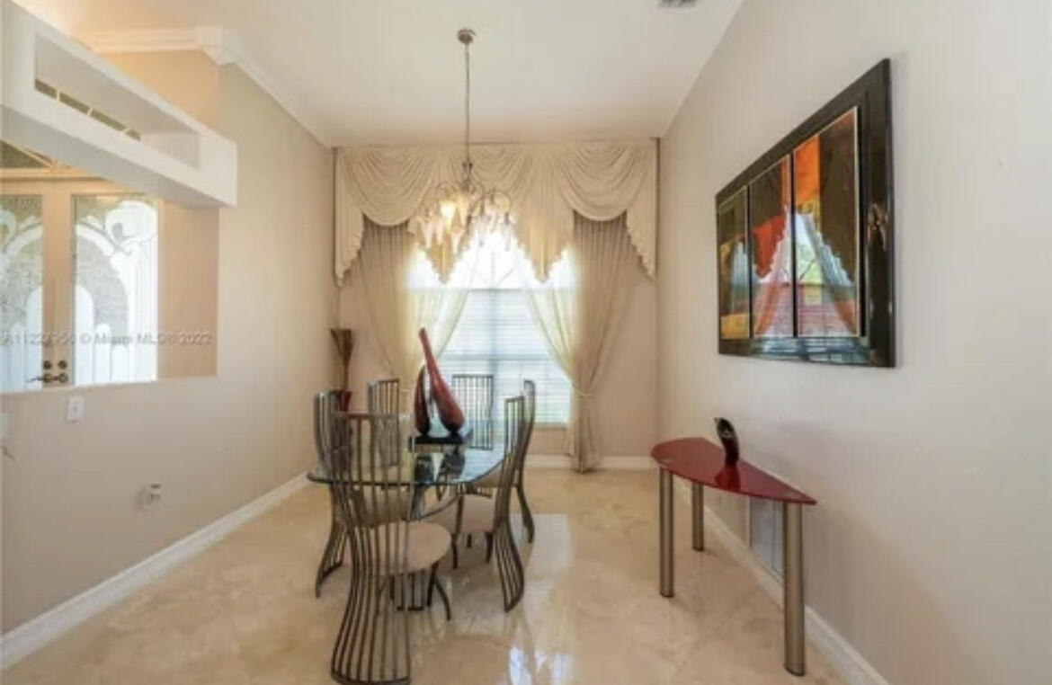 Welcome to this stunning luxury home! This home offers 5 spacious bedrooms and 4 tastefully designed bathrooms. Step inside to find luxurious marble floors that flow seamlessly throughout. The custom kitchen is a chef's dream, featuring granite countertops, stainless steel appliances and a stainless steel sink with a convenient bar area. For your entertainment needs, the home has a luxurious movie theater with signature reclining seating and a large movie screen. The impact glass windows provide both comfort and security. Step out into the backyard and be greeted by an inviting pool with a heated spa, perfect for relaxing or hosting gatherings. Enjoy the ultimate outdoor experience with a full Basketball court. The home also has a double car garage, and plenty of room for more parking.
