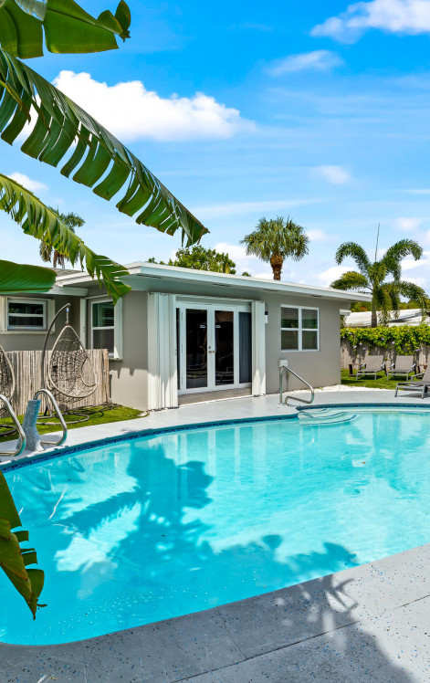 AIRBNB READY! Just 5 minutes from the beach, this corner-lot gem (9,210 sqft) blends modern upgrades with Florida coastal charm. Recently remodeled, the home features a 2022 roof, new AC, impact garage door, updated plumbing, and updated electrical for true peace of mind.Step inside to discover 3 spacious bedrooms and 3 designer bathrooms, complemented by a sleek modern kitchen with quartz countertops, an oversized cooking island, and state-of-the-art appliances. Wide-open living spaces flow effortlessly to the outdoors, where bamboo fencing creates a private sanctuary.The backyard is an entertainer's dream: a sparkling pool, gazebo-shaded lounge, and an al-fresco dining area ready for unforgettable gatherings. Whether soaking up the sun or enjoying the ocean breeze, this home is