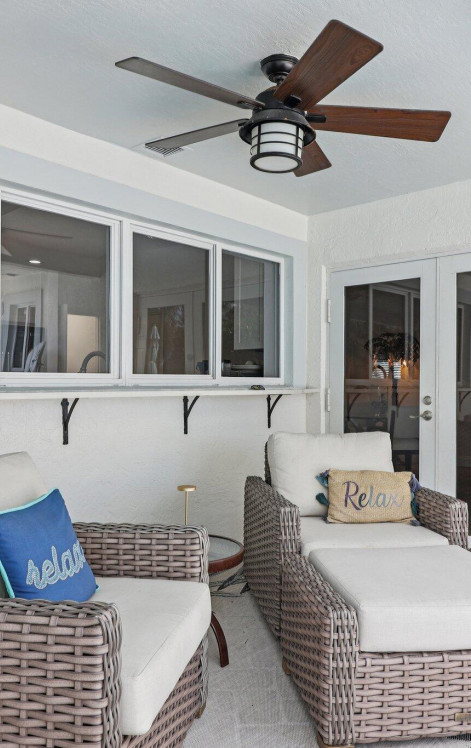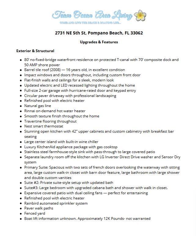 Updated deepwater home 80FT on protected canal--70 FT composite dock and 50 AMP power-wide canal! Open-concept split-bedroom layout offers additional den & formal dining(see floor plan) chef's kitchen w/custom cabinetry, gas cooktop, luxury appliances, island with wine chiller--perfect for entertaining. Elegant travertine floors, impact windows and doors, light & bright space with a coastal-modern vibe. Full sun exposed heated pool set back with lots of green space. The primary suite is spacious with custom closet & impact doors to the pool & water. 16 year old tile roof, 2020 HVAC, upgraded electric, tankless gas water heater, Nest & cameras--Many upgrades in 2021. Walk or golf cart to the beach, dining, golfing, & all entertainment! ''Seller will include golf cart w/ full price offer!''
