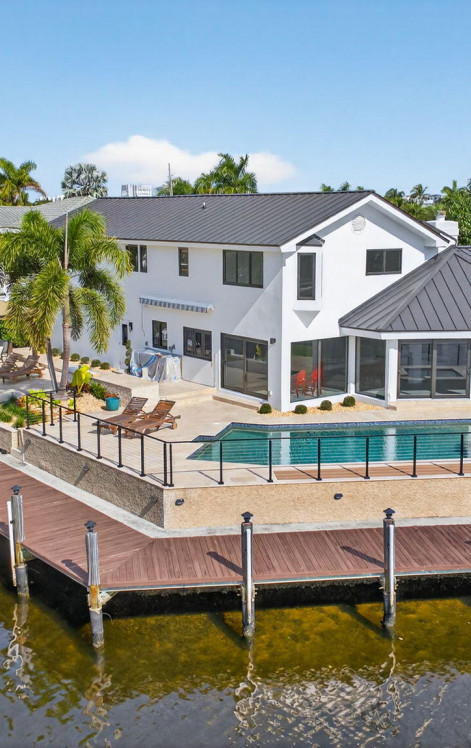 Rare point lot with almost 200 feet of waterfront and dock less than two miles from the beach! Discover stunning vistas and captivating sunsets from this meticulously renovated home. The residence includes 4 BRs and 3.5 baths, with one BR designed as an entry-level mother-in-law suite featuring private entrance and full bath. Upstairs features a huge master bedroom suite, all BRs with water views and a loft area. The kitchen features all new Viking appliances and a convenient pass-through window to the outdoor bar. Additional highlights include three new AC units, new impact windows, luxury front door, heated pool, security system, standing seam metal roof, and a two-car garage with a workstation and epoxy flooring. Only one fixed bridge between you and the ocean! More details to come.