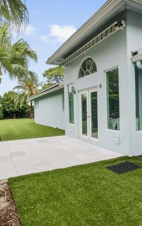 Outdoor spaces are designed for both relaxation and entertaining, featuring a partially fenced yard, synthetic turf, a mature mango tree, and ample room to enjoy the South Florida lifestyle. A golf cart is included.