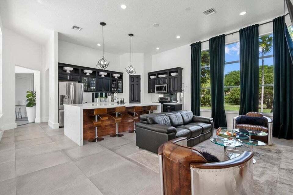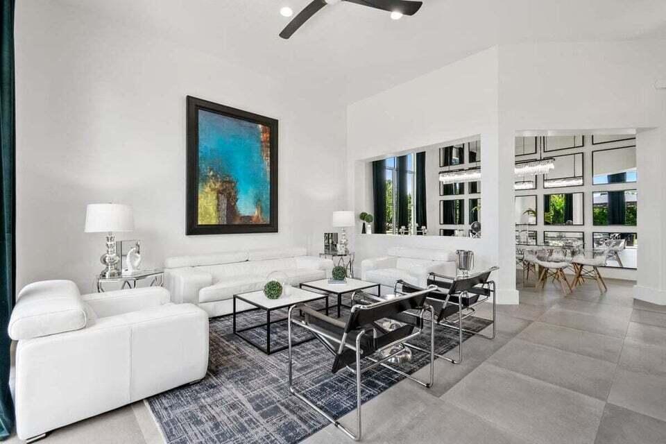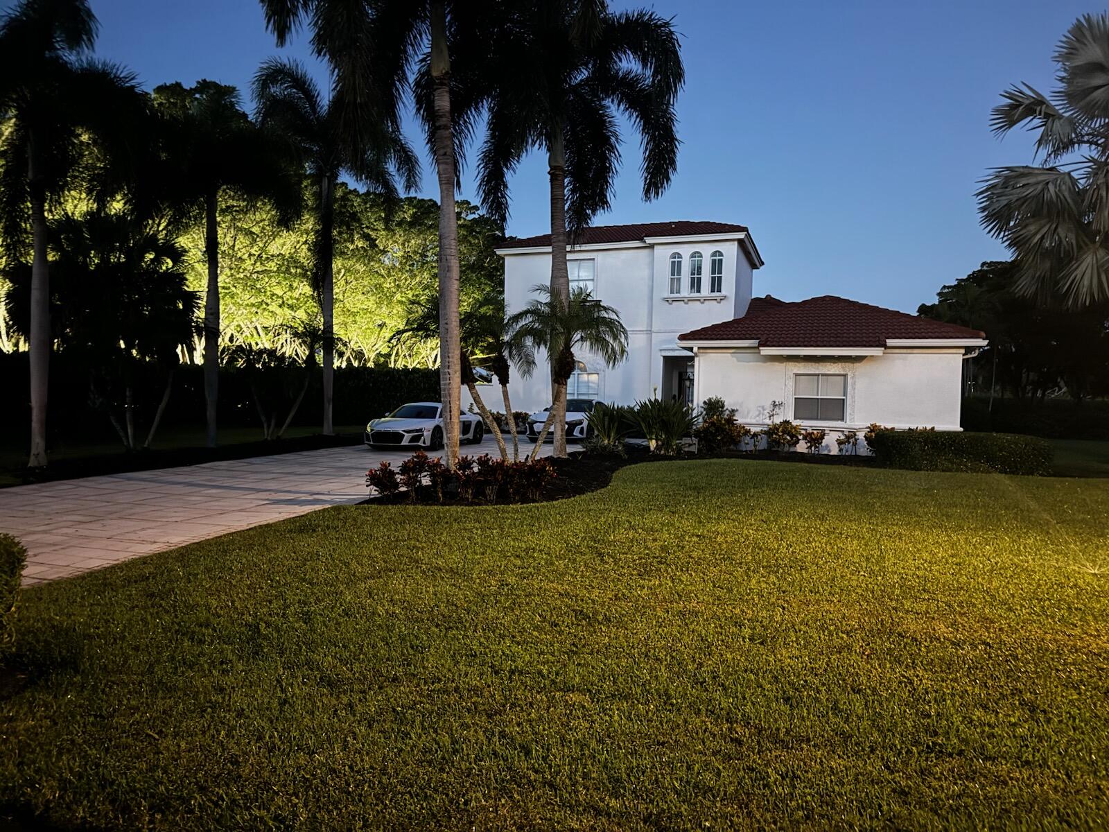 This is a contemporary home on a large, beautiful corner lot in a security gated community. With a clubhouse, golf course NO MEMBERSHIP REQUIRED. Main house 2 Bd 2.5 bath ,with separate two story guest house with living room 1bath 1 bedroom, plus 2.5 car garage The home has a very nice large fountain pool with a private courtyard .Low HOA fees. No reasonable offer refuse.