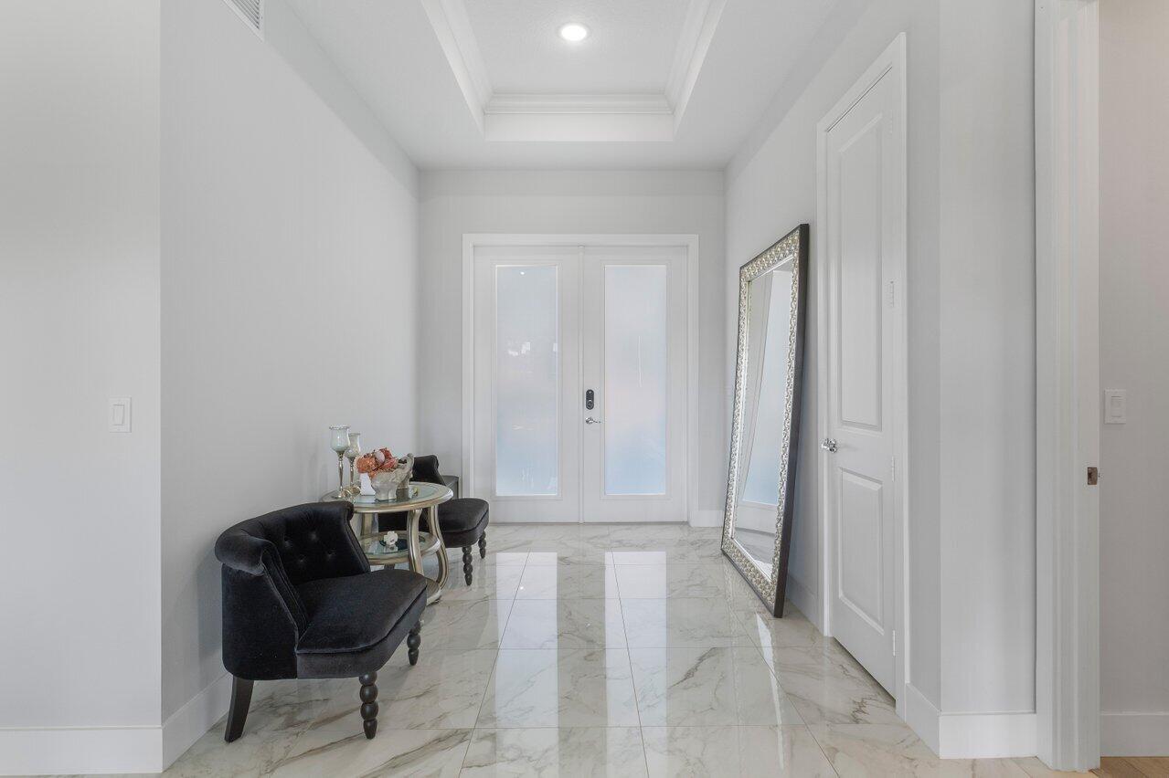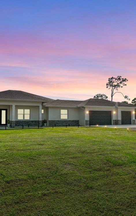 WELCOME HOME to elegance and (1.87) acres of country living! This stunning 2022 CBS built home features (4) bedrooms plus den, (3) full baths, (3) car garage, CITY WATER, paved road, hurricane impact windows & doors and can be purchased furnished or unfurnished. ENTERING this very well maintained property and sought after Bellaire 3 model you will discover that this gem is resting on a premium high and dry lot. The grand 30'x9' covered entry brings you into the 8' double front doors where you are greeted by a spacious foyer, soaring 12' volume ceiling, stunning custom media wall, open living areas offering an abundance of natural light and a design that is exquisite! PASSING THROUGH you will find upgrades throughout, double tray ceilings, expansive 12' kitchen island boasting (CLICK)