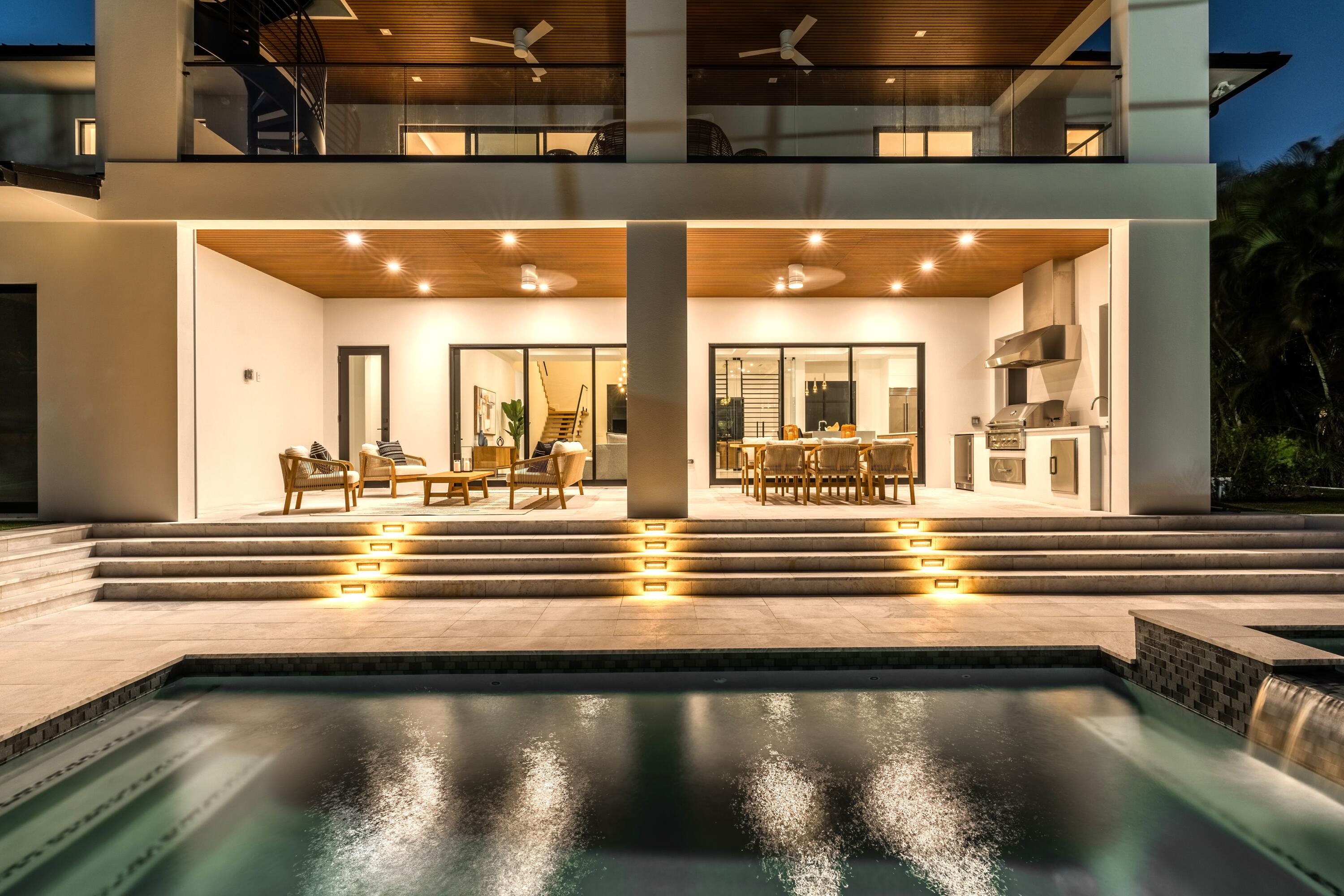 Unique opportunity with view of the Intracoastal waterway as you experience luxury living in this brand-new masterpiece. High-end designer finishes & clean lines throughout exude luxury & elegance. This home is replete with impact windows & doors, chef's kitchen with professional grade appliances, stunning glass wine enclosure, elevator, sleek gas fireplace, motorized screens & more! Large open balcony off the loft space & primary suite provides ample private lounging areas, including a spiral staircase to the rooftop deck with incredible panoramic views of the Intracoastal & Palm Beach Island. Enjoy resort style living with a heated pool & hot tub. Entertain & dine al fresco in the covered loggia complete with a summer kitchen. Impeccable design, prime location & top-notch craftsmanship.