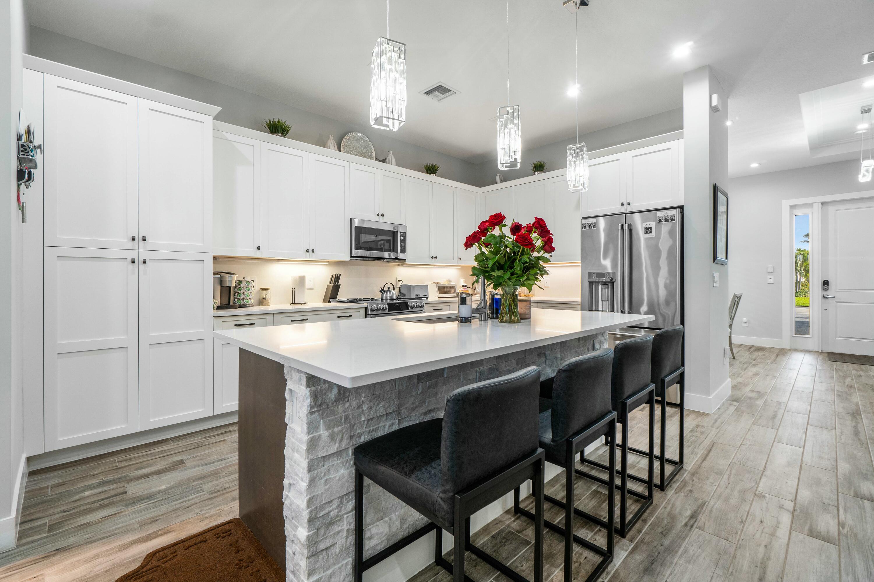 Banyan Cay is a collection of 94 gated newer construction residences, just minutes from Palm Beach. Next door is THE BELGROVE, a new Marriott Autograph Collection hotel featuring 150 rooms, multiple food and beverage outlets, fitness/spa facilities, two pools and outdoor patio areas, plus meeting and event space. This one story floor plan with volume ceilings features 3 bedrooms + 3 FULL BATHS and is loaded with upgrades like GE Cafe series appliances, California closets, numerous custom wall and ceiling details, driveway paver expansion, and more! A large fenced in backyard offers plenty of space and privacy.Also onsite is the new DUTCHMAN'S PIPE, a private country club (with voluntary membership) featuring a Jack Nicklaus designed Golf Course and state-of-the-art racquet center