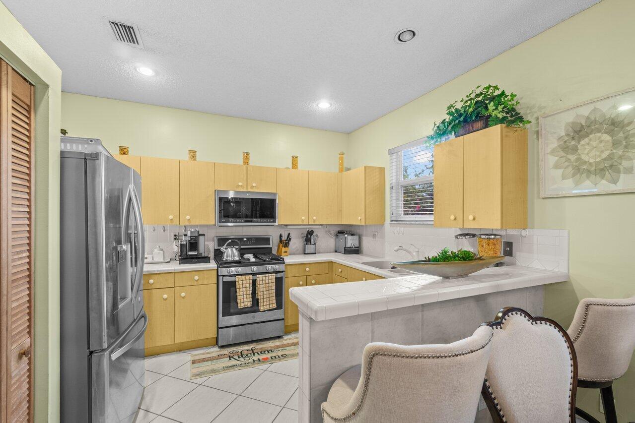 Charming 3-Bedroom, 2-Bathroom Home in Fairway Isles - Step into this charming home featuring a split floor plan for added privacy. The upgraded bathrooms include dual sinks in the master suite & new tile flooring, adding a fresh and modern touch.The open-concept kitchen offers a breakfast bar, perfect for casual meals or entertaining. Relax in the spacious living room & dining area, designed for both comfort and functionality. Enjoy seamless indoor-outdoor living with French doors leading from the master to a private patio, ideal for morning coffee or evening relaxation. This home is equipped with a whole-home generator, ensuring peace of mind during any power outage.Residents benefit from a manned gate for added security, plus access to basketball, tennis, jog & bike trails.