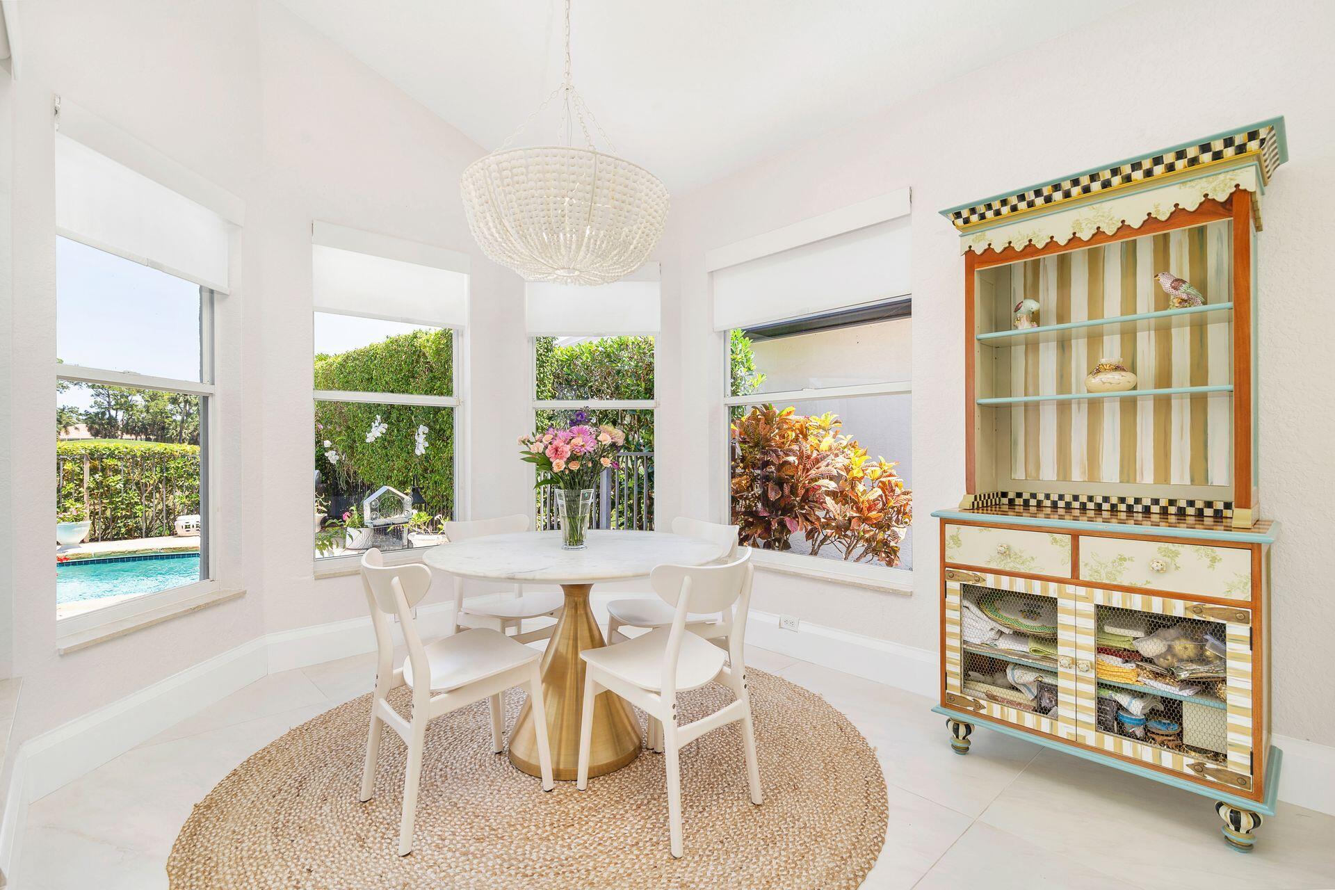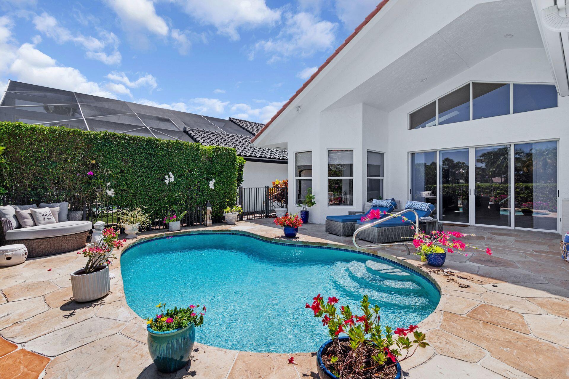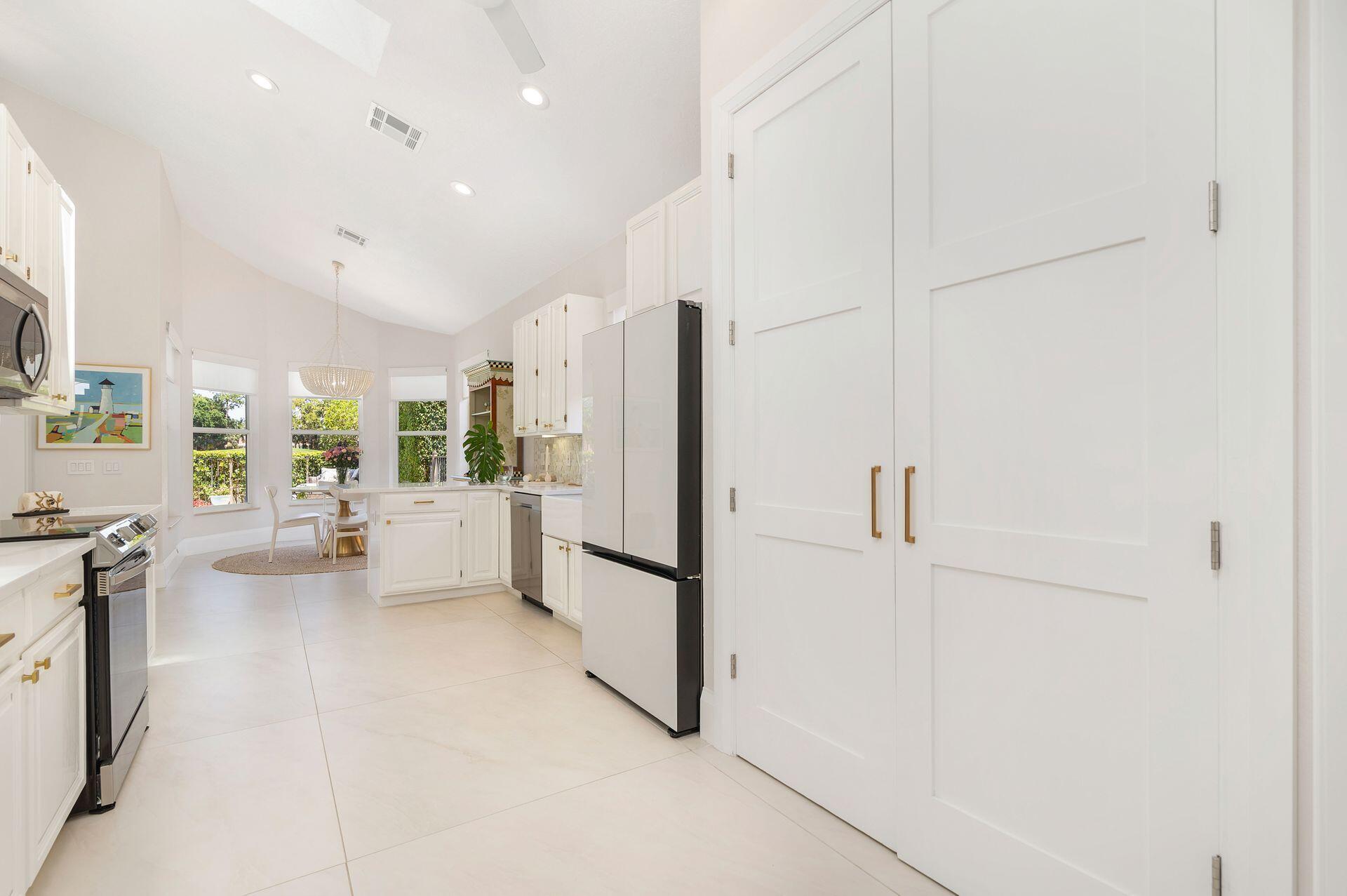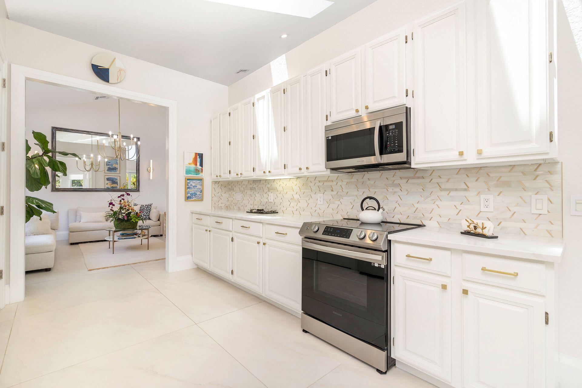 Nestled within a prestigious, gated community, this model perfect home is a blend of elegance, comfort, and modern sophistication. This stunning single-story residence, boasts 4 spacious bedrooms and 4 luxurious bathrooms, making it one of the larger and more sought-after homes in the neighborhood. Perfectly positioned overlooking the golf course, and a tranquil lake, creating a peaceful and private retreat. Step inside to discover a thoughtfully updated interior, featuring elegant porcelain tile throughout living area and a host of high-end upgrades. The heart of the home, the kitchen dazzles with new white quartz countertops, white cabinetry, designer, fixtures, and top-of-the-line appliances. Each bathroom has been