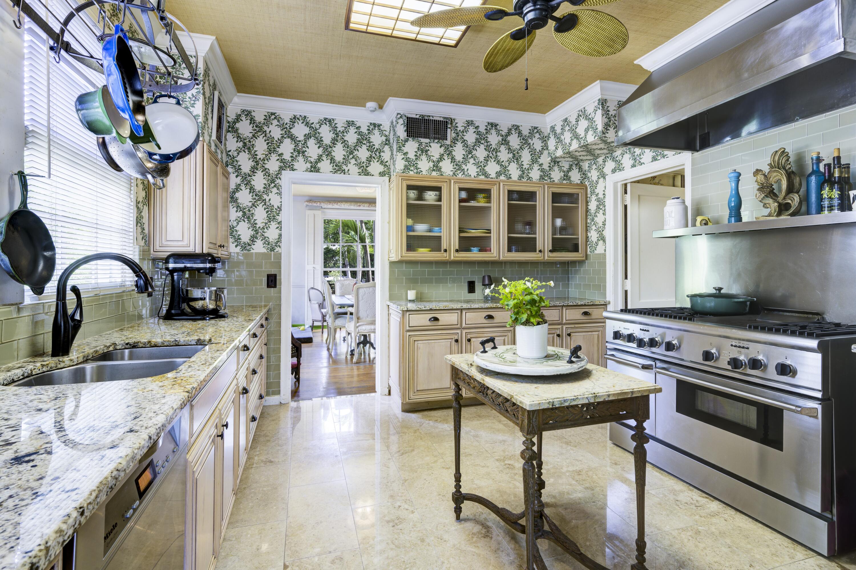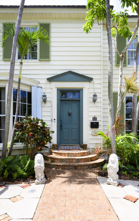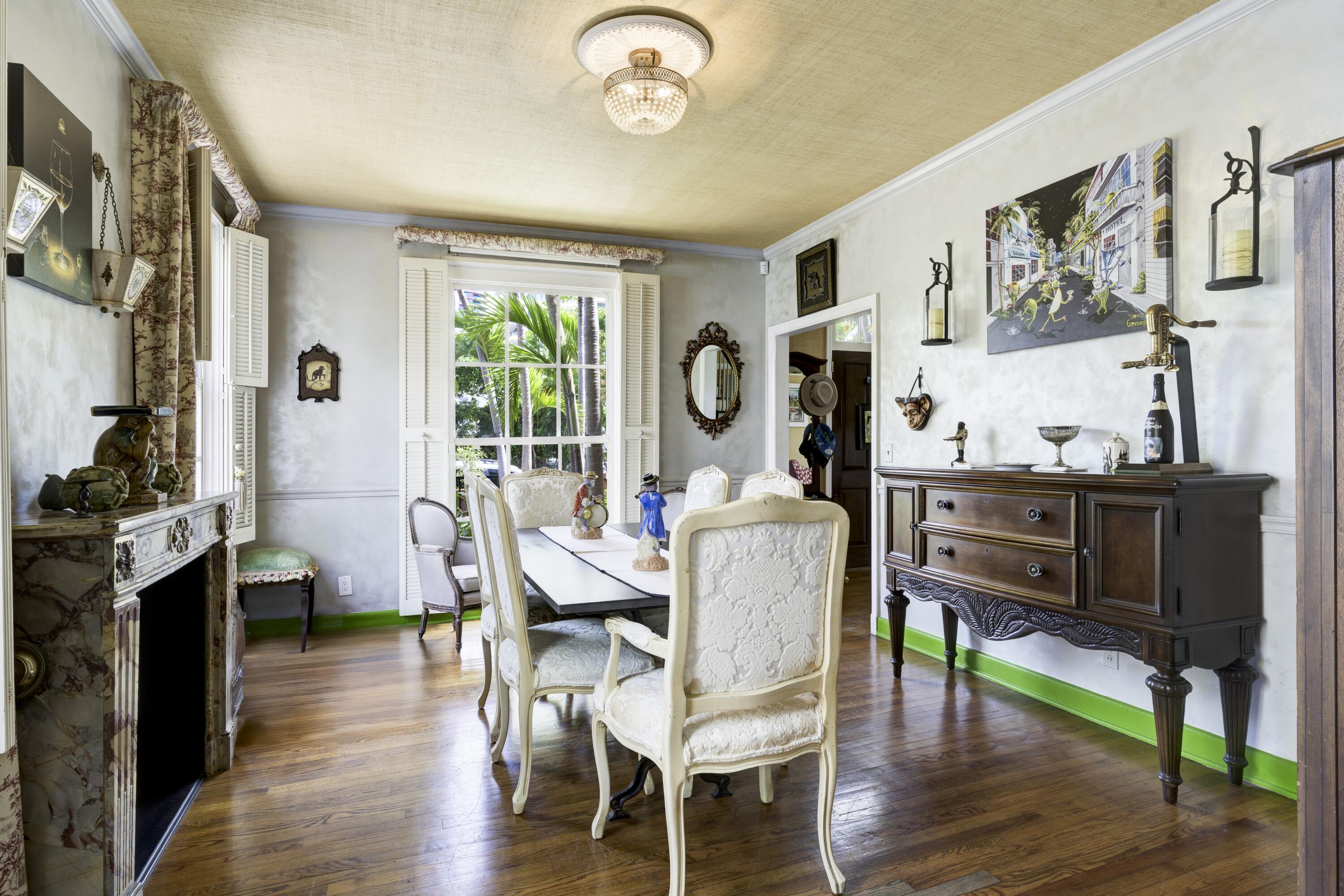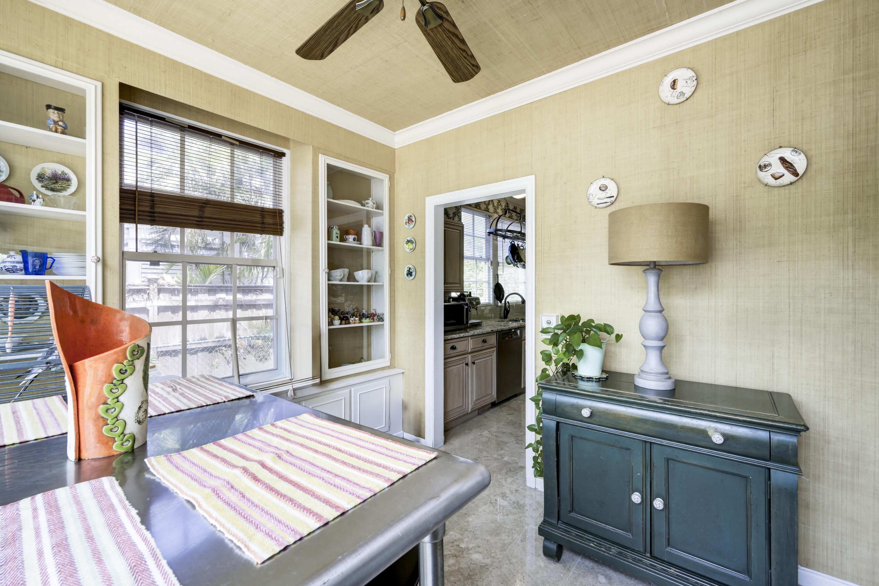 Timeless charm meets comfortable elegance in the heart of West Palm Beach. This Georgetown-style two-story pool residence blends timeless character with thoughtful upgrades, creating the perfect setting for relaxed living and effortless entertaining.Inside, Miami Dade Pine hardwood floors, elegant crown molding, and soaring 9-foot smooth ceilings set the tone. Custom built-ins offer both beauty and function throughout. Gather in the formal living room around the decorative fireplace or take in garden views from the bay window and adjacent home office. First floor features bedroom with wall-to-wall built-in shelving and pool view. Full downstairs bath with counter height vanity, tiled countertops imported from Bali, and a walk-in shower with glass doors and tiled flooring.