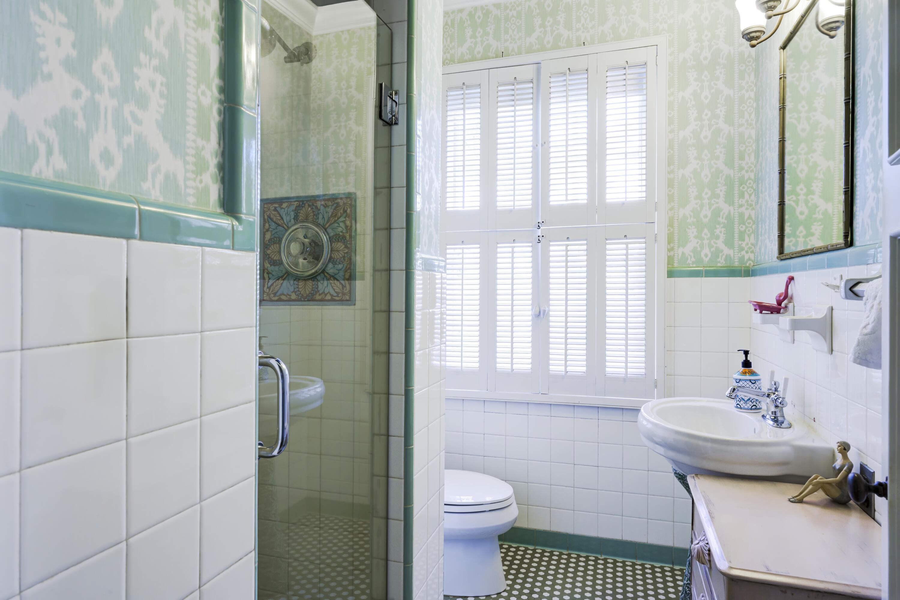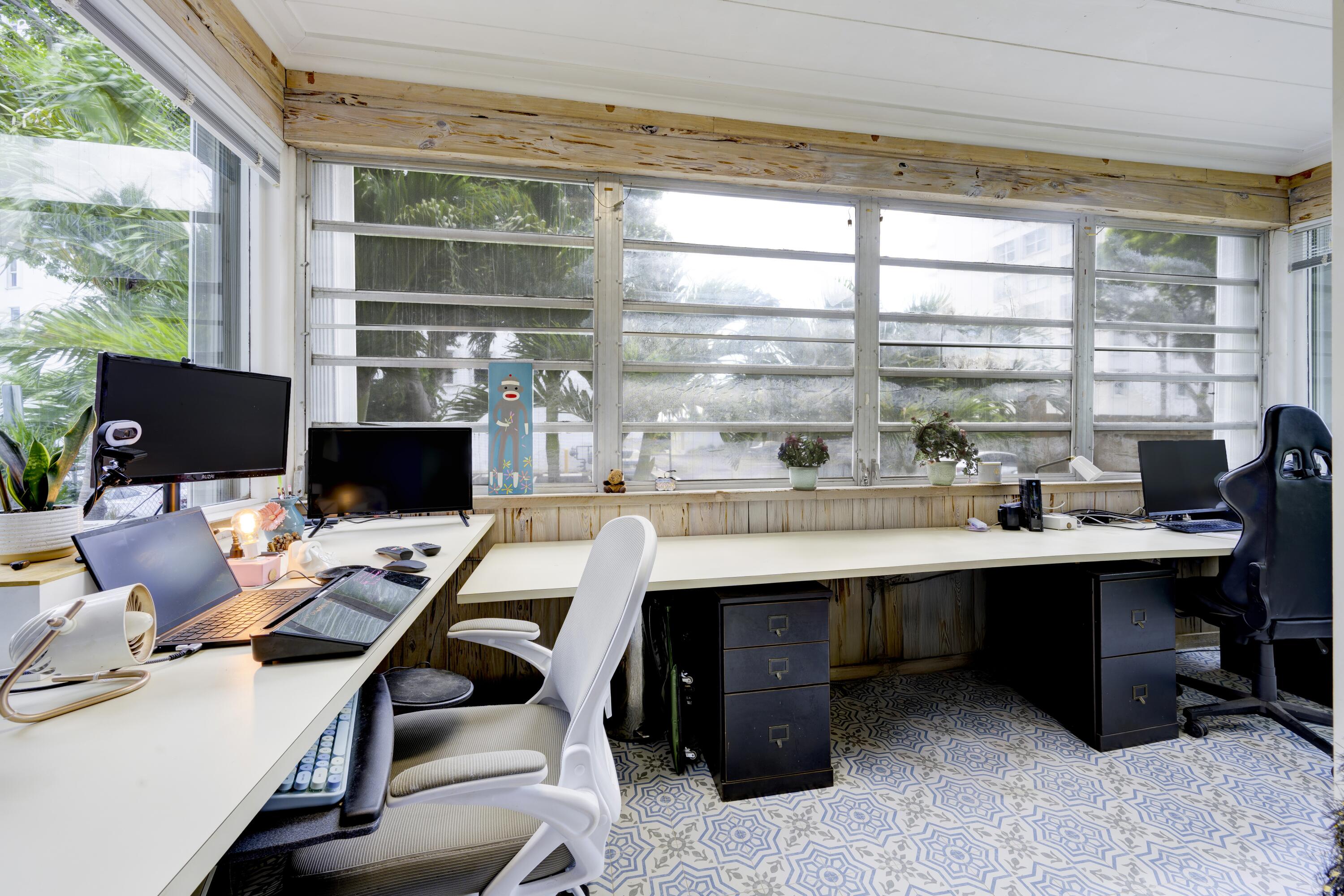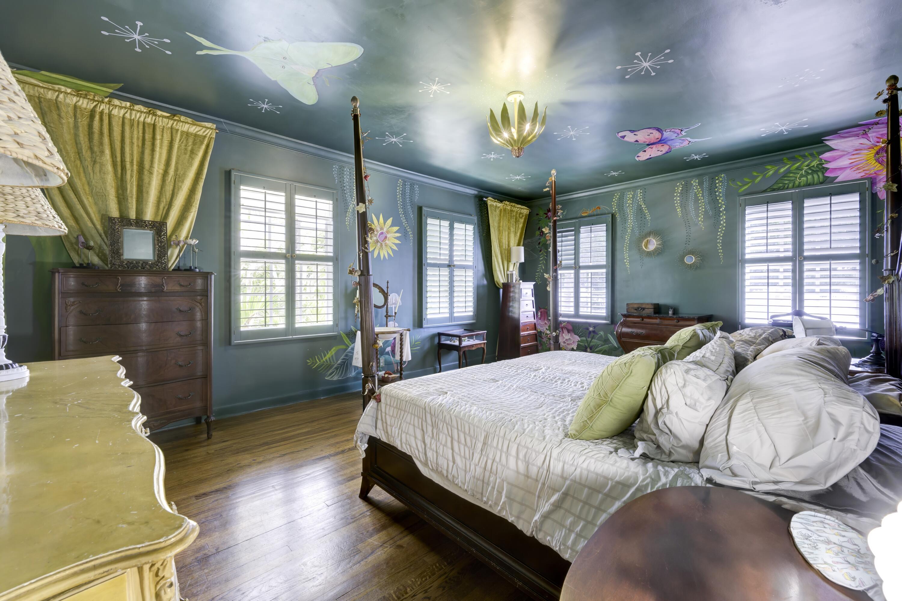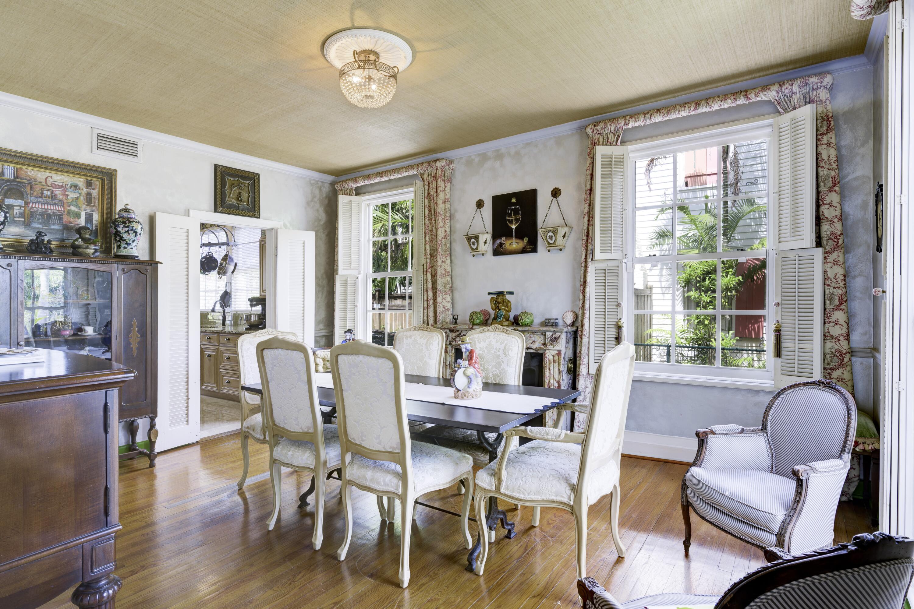 Timeless charm meets comfortable elegance in the heart of West Palm Beach. This Georgetown-style two-story pool residence blends timeless character with thoughtful upgrades, creating the perfect setting for relaxed living and effortless entertaining.Inside, Miami Dade Pine hardwood floors, elegant crown molding, and soaring 9-foot smooth ceilings set the tone. Custom built-ins offer both beauty and function throughout. Gather in the formal living room around the decorative fireplace or take in garden views from the bay window and adjacent home office. First floor features bedroom with wall-to-wall built-in shelving and pool view. Full downstairs bath with counter height vanity, tiled countertops imported from Bali, and a walk-in shower with glass doors and tiled flooring.