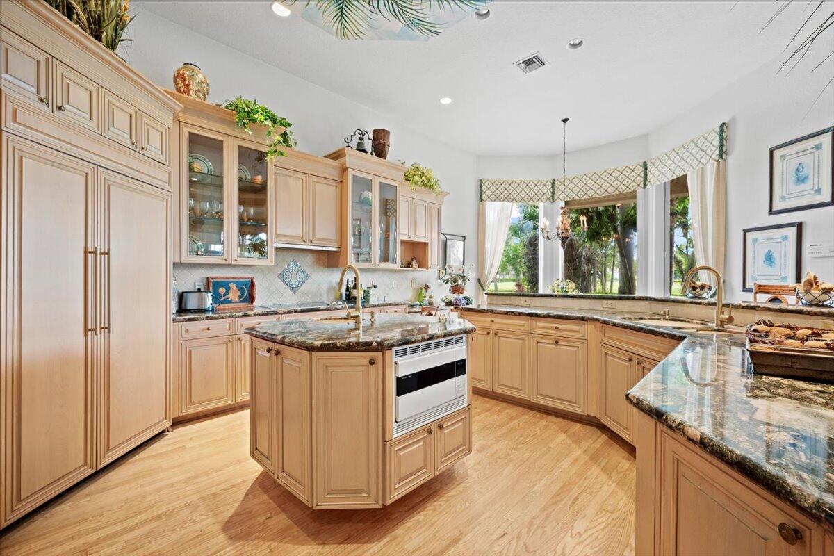 Beautiful one owner estate on the cul-de-sac over 60 feet of waterfront views.Situated to view golfers on the fairways and the lake. Lush landscaping offer beauty and privacy. Architectural details custom touches throughout. Elegant and beautiful wood and marble mixed floors and artist accents throughout. Also features salt water private pool, spa, covered outside dining, and cooking. Convenient dog wash 3.5 car garage.