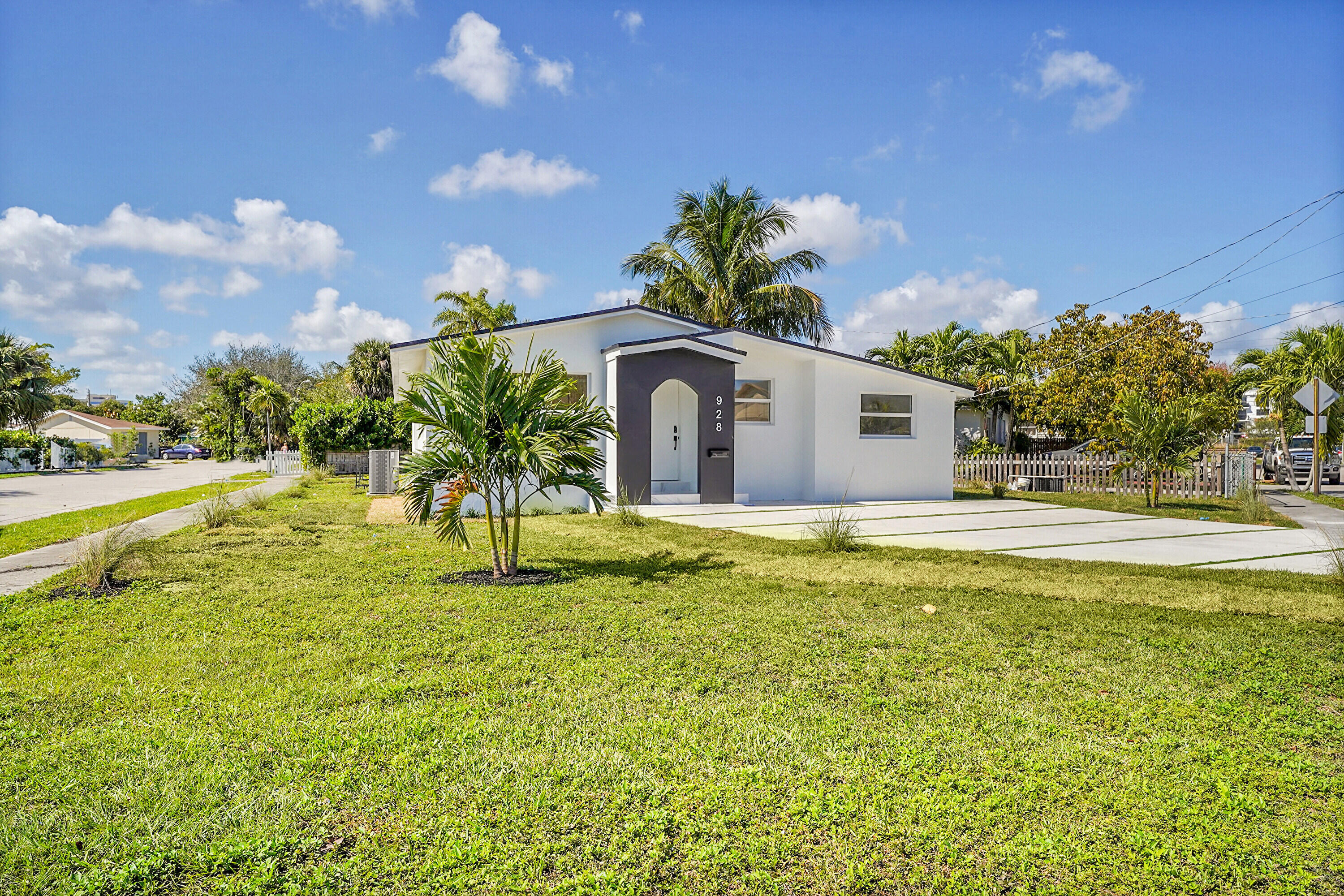 Beautiful, luxurious designed single-family home located five mins from vibrant downtown WPB. This complete interior and exterior remodel embodies a 2024 central A/C system, a new roof, and custom impact windows with premium LED soffit lights. Elaborate, bright living room featuring new tile flooring and that enhances the sense of space. This custom made kitchen is equipped with top of the line Samsung Bespoke appliances, a waterfall Quartz center island, and elegant white cabinetry with stylish pendant lighting. The outdoor space includes a patio, ideal for entertaining or enjoying a quiet evening. This turnkey home is personally crafted with a layout that is the perfect blend of a premium comfort with the convenience of location and proximity to i-95 and the beach.