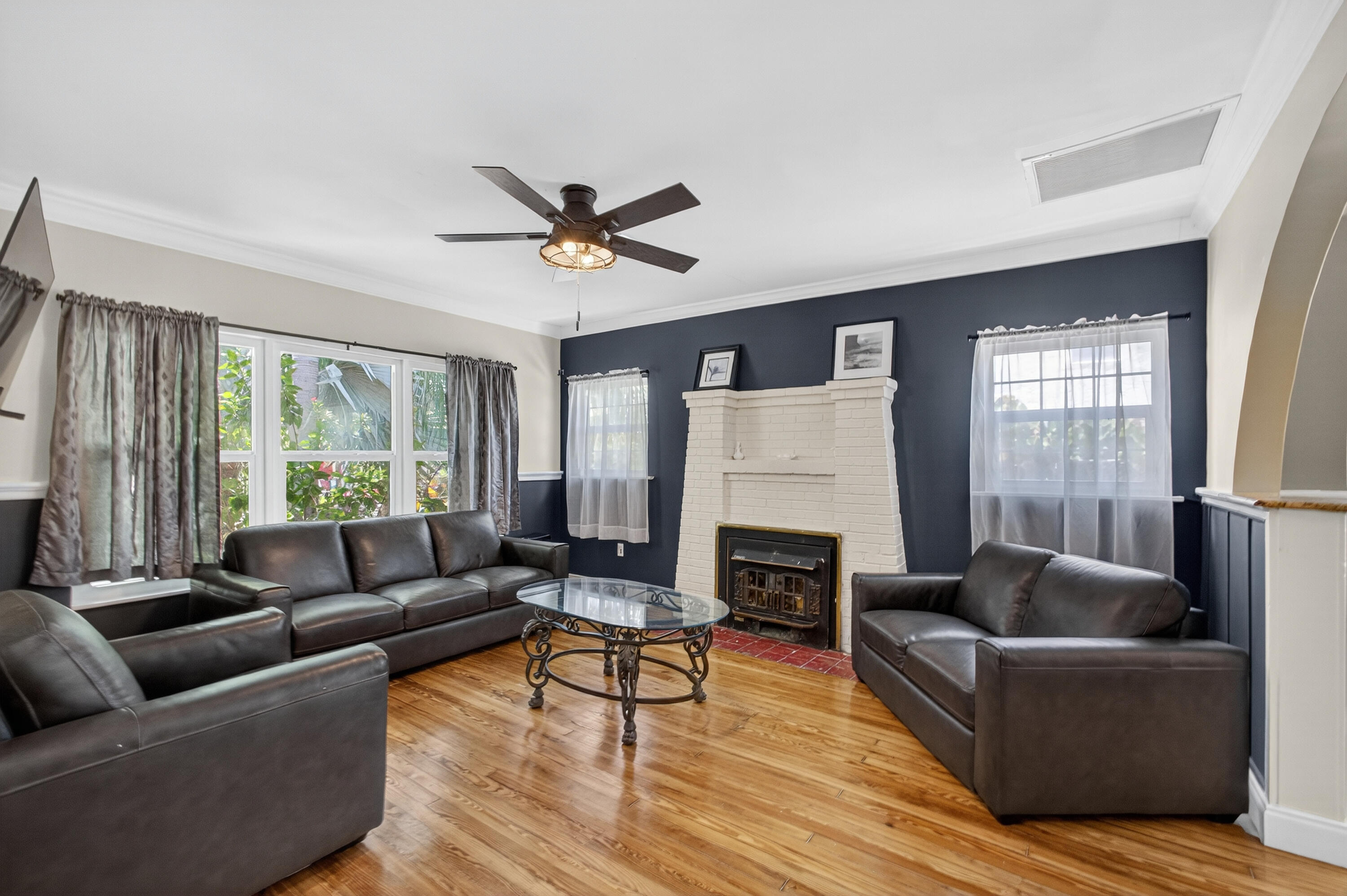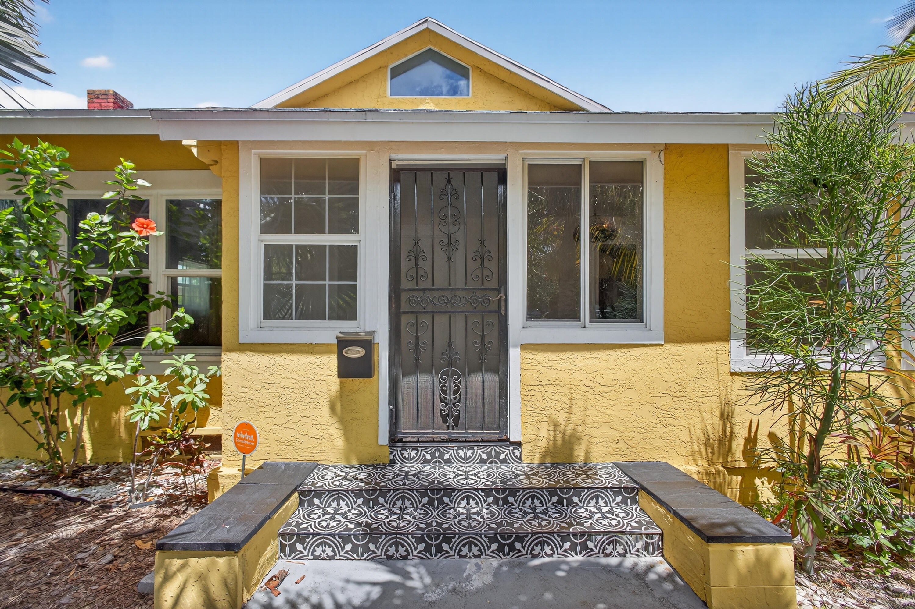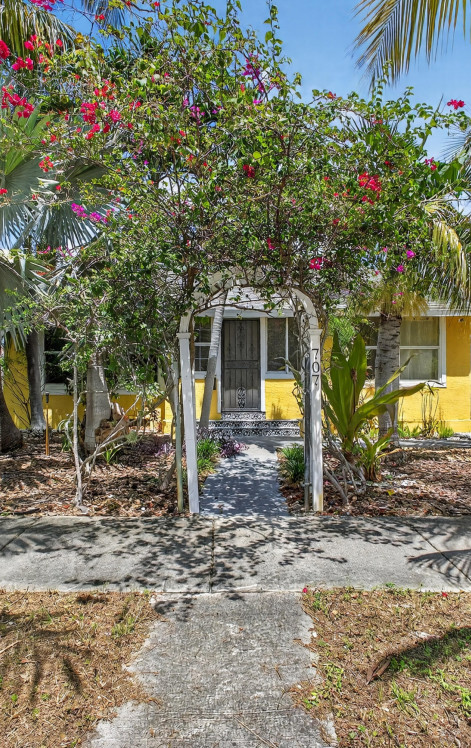 This charming home is a 3bed/3bath with numerous updates including impact windows, restored wood floors, all new kitchen, lighting, new bathrooms plus much more. Tropical landscape leads you into a cozy front porch, then a welcoming foyer, on to the spacious living room that boasts a beautiful fireplace and archway into the dining area with bay windows, then on to the gourmet kitchen and a huge utility room. The main bedroom is on the 1st floor with an en-suite bathroom, bedroom 2 is also an en-suite and has a private entrance, perfect for an in-law suite or income studio, bedroom 3 is upstairs with a huge walk-in closet. The yard is an outdoor oasis with multiple lounging areas, paver patios, artificial turf and fully fenced with lots of parking. Close to beaches and PBI airport. Hurry!