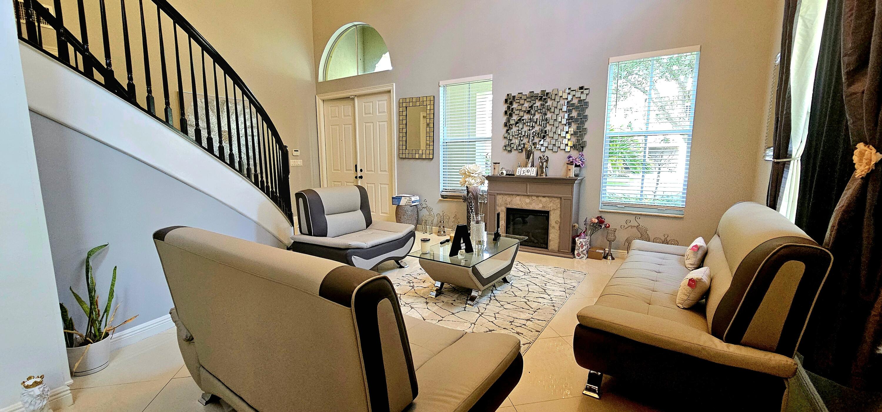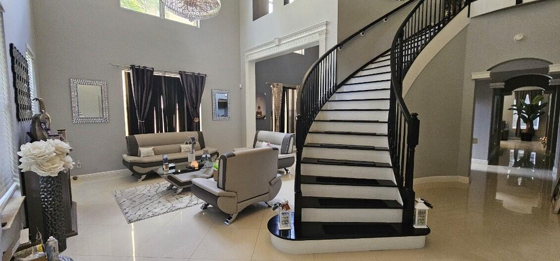 Welcome to 9195 Nugent Trail - a stunning pool home located in the prestigious, gated community of Parkwood Estates at The Estates of Royal Palm. This beautifully maintained residence offers the perfect blend of luxury, comfort, and privacy in the heart of West Palm Beach.Featuring 5 bedrooms, 4 bathrooms, and over 3,500 square feet of living space, this home is designed for both relaxed living and elegant entertaining. Step inside to find soaring ceilings, stylish tile and wood flooring, and abundant natural light throughout.The gourmet kitchen is a chef's dream, complete with granite countertops, stainless steel appliances, a large center island, and a walk-in pantry. The expansive primary suite offers a private retreat with a sitting area, dual walk-in closets, and a
