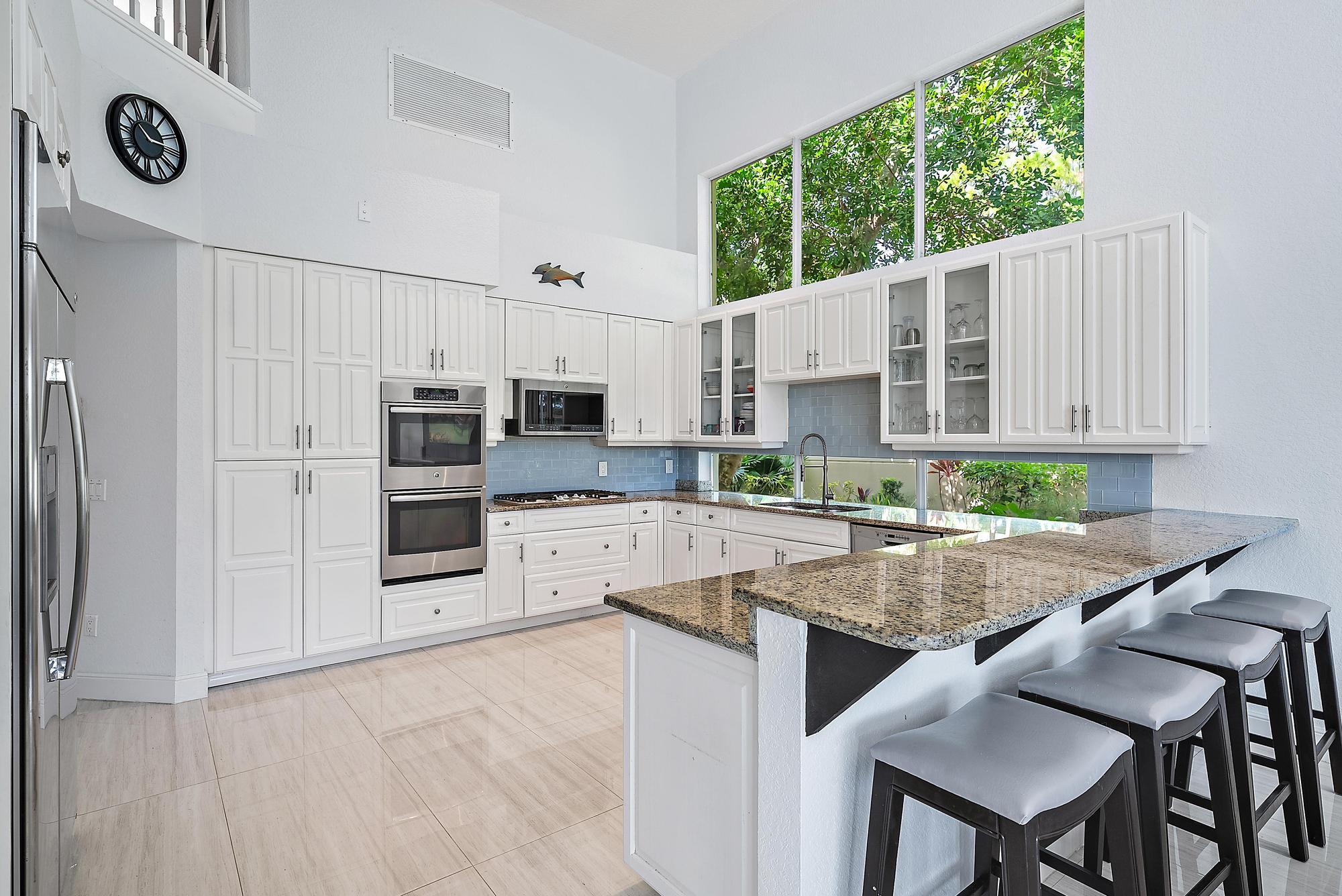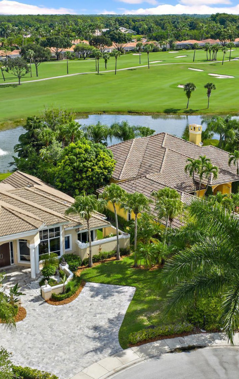 IMMEDIATE PREMIER GOLF MEMBERSHIP AVAILABLE. This expansive and elegant estate has been modernized and offers breathtaking views of water and the 6th green of the Jack Nicklaus-designed Legend Course. With 6BR/7.5BA, this impressive residence is situated on more than one-third of an acre in a private cul-de-sac, showcasing 120 feet of water frontage. The result is a perfect blend of scenic beauty and privacy--all within close proximity to the main Ibis gate, and Ibis's world-class amenities, for added convenience. The home has been transformed with sleek and stylish renovations, many of which done in 2021. Chic porcelain tile flows throughout the main living areas, complementing the soaring ceilings and expansive open spaces.
