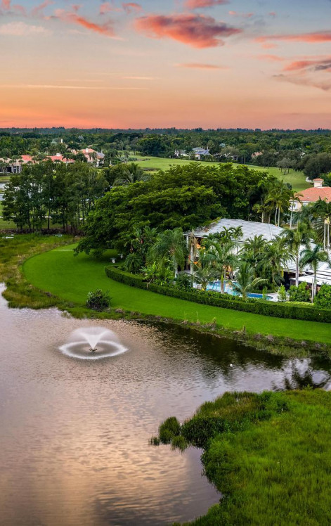 A One-of-a-Kind Estate with 350 Feet of Waterfrontage on one of Ibis's most valuable lots. Set on a rare .70-ACRE, pie-shaped cul-de-sac lot with 350 FEET OF WATER FRONTAGE, this majestic estate offers sweeping panoramic views of lakes and the Jack Nicklaus-designed Legend Course, holes 5, 6, and 7. Designed to impress yet created for everyday comfort, the property has been fully reimagined with a modern, zen-inspired aesthetic that emphasizes harmony, openness, and connection to its extraordinary surroundings. Inside, expansive windows flood the interiors with natural light and frame the resort-style pool and grounds. The flow between formal and casual spaces makes the home ideal for both intimate living and grand entertaining.