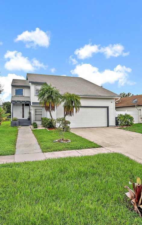 Beautiful 4BR/3BA single-family home with private pool overlooking a serene lake and surrounded by mature fruit trees. Enjoy peaceful water views from the screened patio or the master bedroom's private balcony. Home is equipped with working sauna, accordion shutters and offers great indoor/outdoor living. Spacious layout perfect for relaxing or entertaining. Conveniently located near Turnpike, I-95, and Downtown West Palm Beach. Community amenities include clubhouse, fitness center, party room, card room, billiards, tennis, racquetball, and playground, . Must see!
