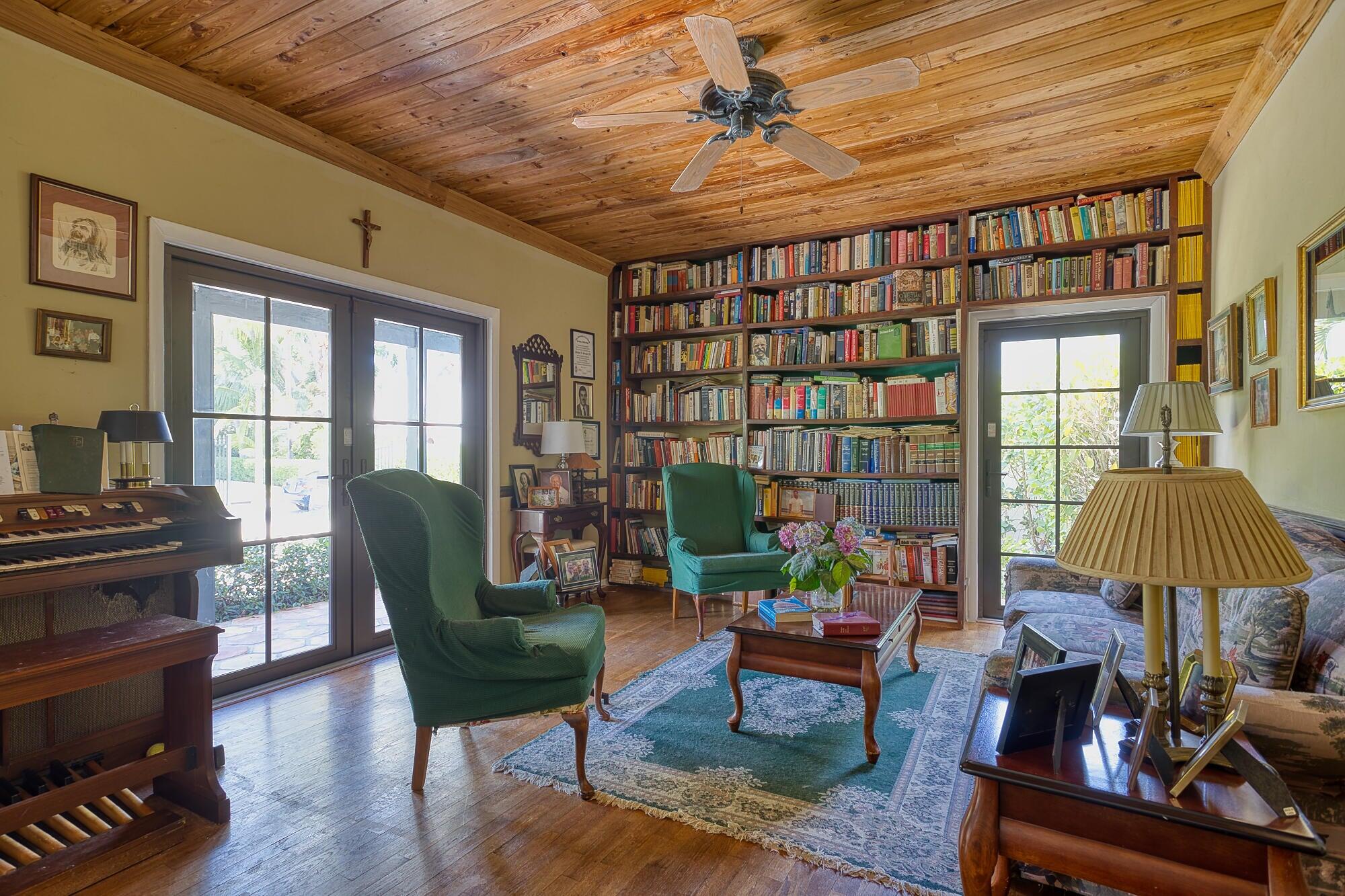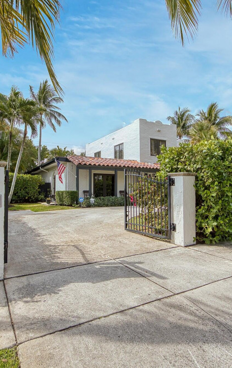 LOCATION! LOCATION! In the heart of historic El Cid, steps to the intracoastal with Palm Beach views from the front lawn/entryway, a Mediterranean style residence on large private lot. Located just south of downtown West Palm Beach. Private and gated, heated pool, cabana/studio w/ full bath, new impact windows in 2025, new first floor flat roof in 2025. Grand entry foyer, formal dining room, and living room with 14' high tray ceiling and fireplace. Library w/french doors, pecky cypress ceiling, patio, and built in bookcases. Spacious first floor primary bedroom w/ en-suite bath, Roman tub, walk in shower, private commode, and large walk in closet. Galley kitchen w/ breakfast room and butler pantry. Family room with french doors leading out to pool deck. Laundry room.And 5 min to beach!