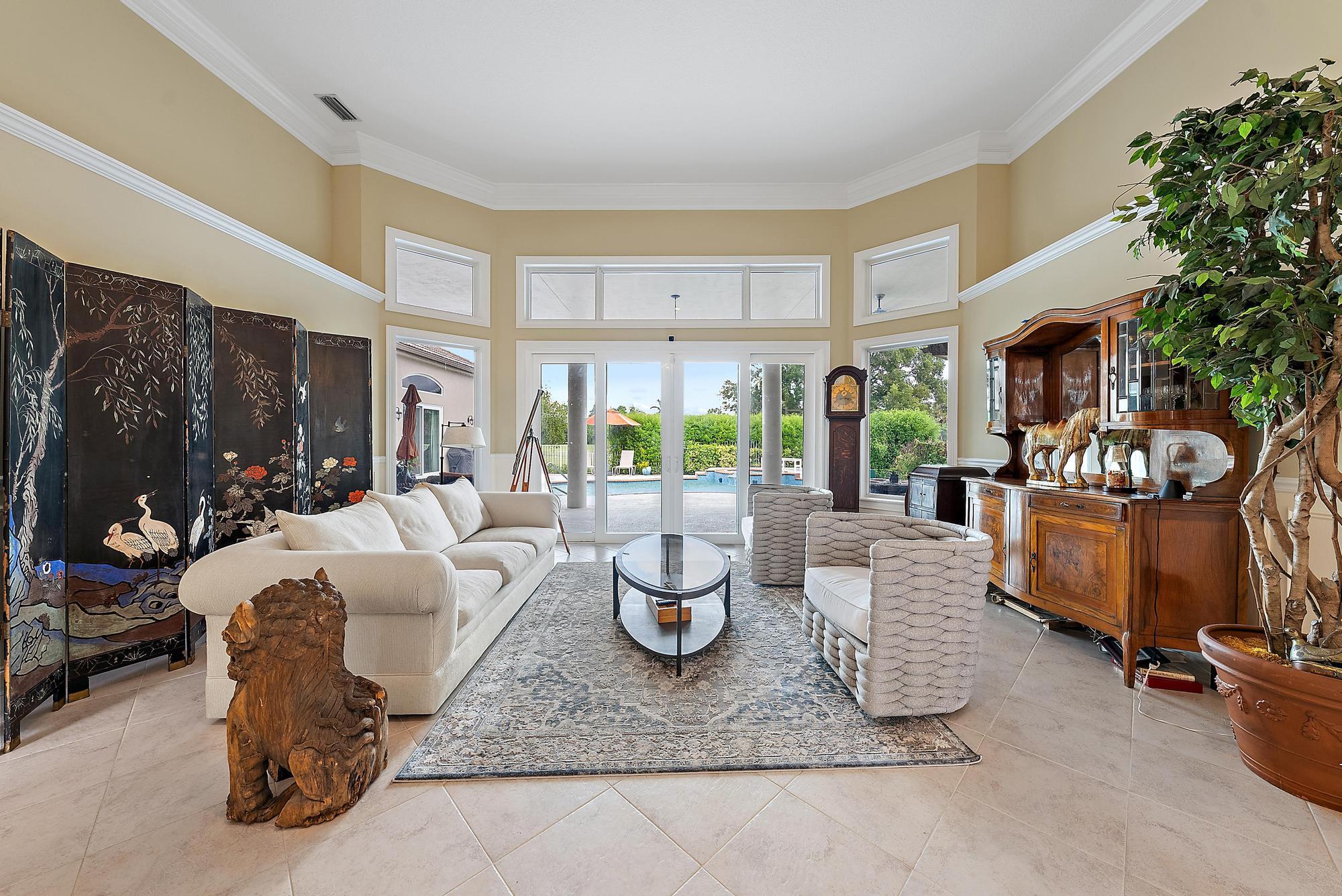 Set on over an acre of lush, manicured grounds with sweeping views of the 9th holeof the PGA National Estate Golf Course, this stately residence in Bay Hill Estatescombines timeless architecture with thoughtful, modern upgrades. From themoment you approach, the long upward-sloping circular driveway framed byRoman columns and an impressive portico, along with a full, oversize, epoxy floor,three-car garge, hints at the elegance that awaits inside. The home's interiors aredefined by soaring ceilings, eyebrow windows, and abundant natural light, creatinga sense of openness and grandeur. A wall of impact glass sliders in the family room,living room, and primary suite opens directly to the lanai and free-form pool, separate custom fenced-in area,