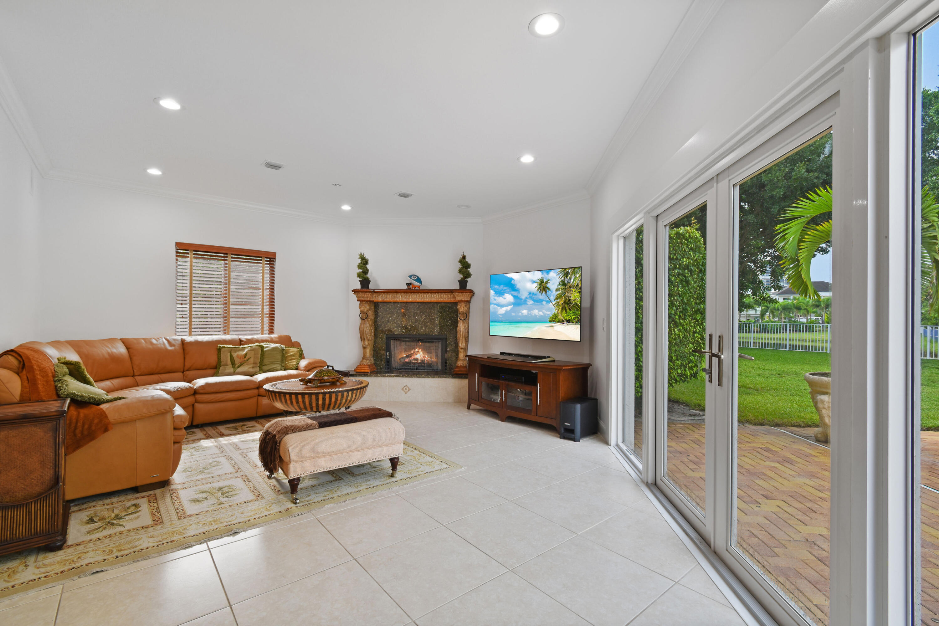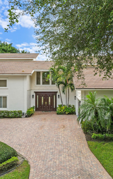 A private sanctuary on an oversized homesite, this custom residence blends timeless architecture with resort-style comfort. Beyond the manned gate, a circular paver drive leads to a light-filled 4BR/3.5BA home with 4,661 SF of gracious living--formal living and dining, a generous family room, and a wet bar--all beneath volume ceilings with a fireplace and French doors opening to the pool. Freshly painted interiors provide a crisp, move-in-ready backdrop.within 10 minutes to palm beach and PBI airport