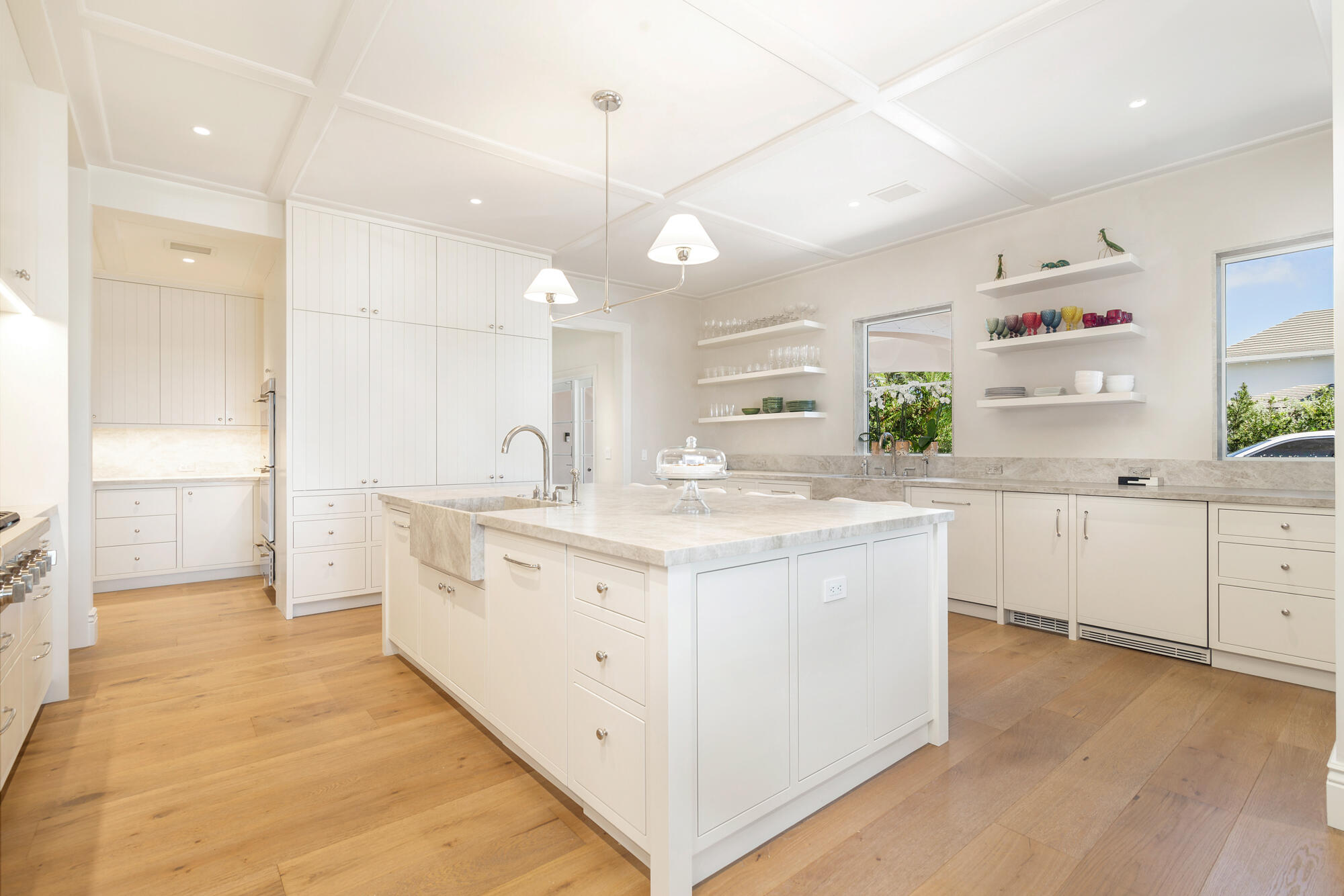 Situated on a rare .45 acre lot on the Intracoastal Waterway with its own private dock, this expansive 5 bedroom, 5.5 bathroom estate offers breathtaking water views and luxurious living in one of West Palm Beach's most coveted neighborhoods. Fully renovated throughout--including a new roof, all-new impact doors and windows--the home was elegantly designed by acclaimed interior designer Caroline Rafferty. The compound spans 9,535 total sqft, including 6,700 sqft of living space, and features soaring ceilings, curated finishes, and a thoughtful layout. The chef's kitchen is fully outfitted with a Thermador 6-burner gas range, two dishwashers, wine fridge, and a butler's pantry featuring dual ovens, refrigerator drawers, and a large china closet with an additional refrigerator.