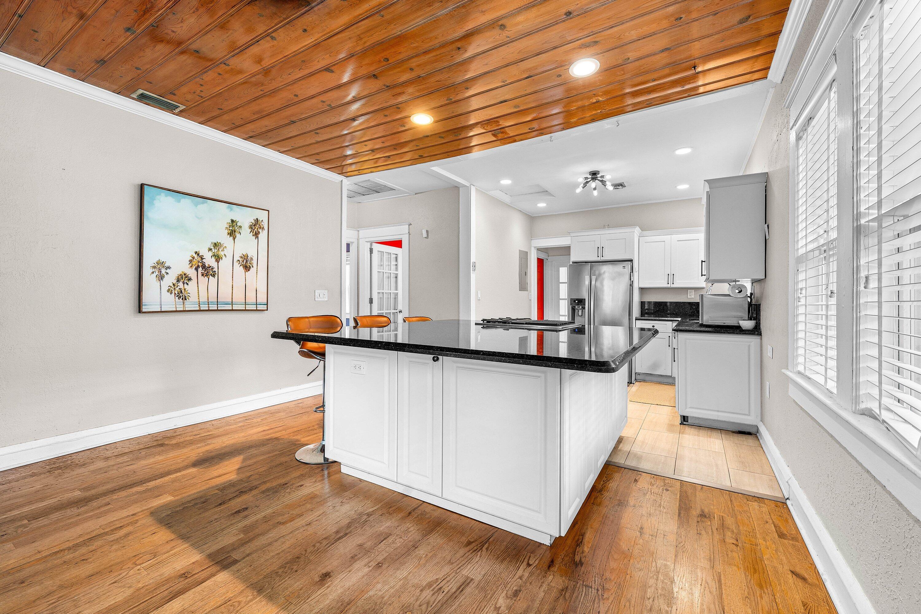 Step into timeless charm with this classic 1930s ''Old Florida'' bungalow, brimming with character and modern updates. From the original hardwood floors to the high ceilings and crisp white clapboard siding, this home captures the breezy, coastal feel reminiscent of the Florida Keys. Offering 2 bedrooms and 2 full bathrooms, the home also features a sun-filled Florida Room--ideal as a home office or potential 3rd bedroom--plus a versatile bonus room at the rear. The open, updated kitchen boasts a large center island designed for gathering and entertaining.Peace of mind comes with impact windows and doors, enhanced roof strapping for insurance savings, and a backup generator for power outages. Outside, the private fenced backyard offers low-maintenance living, complete with an outdoor showe