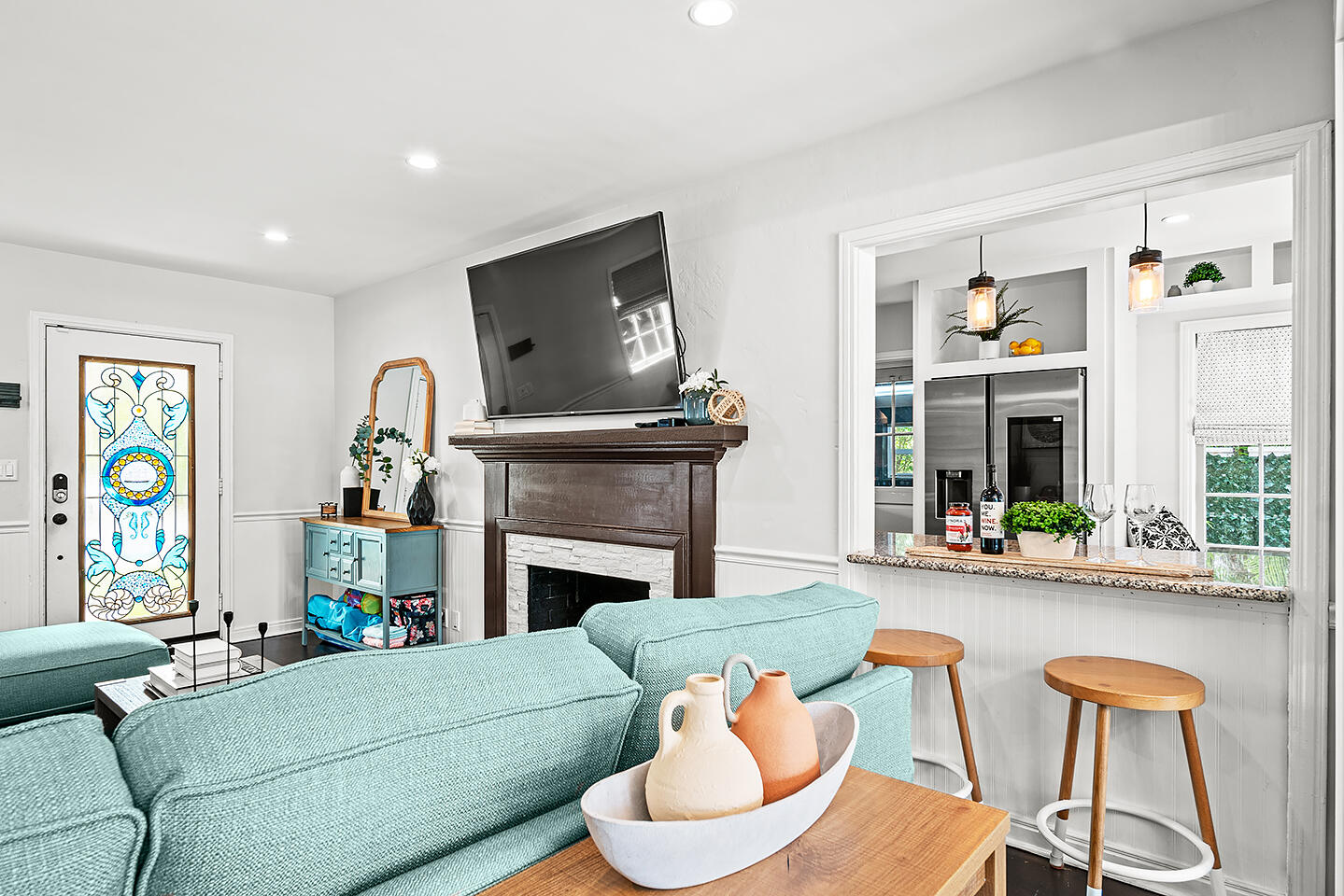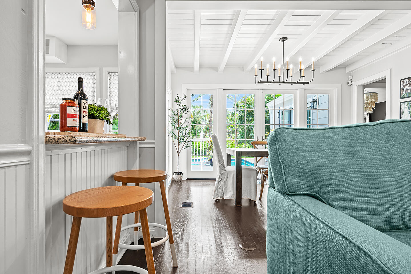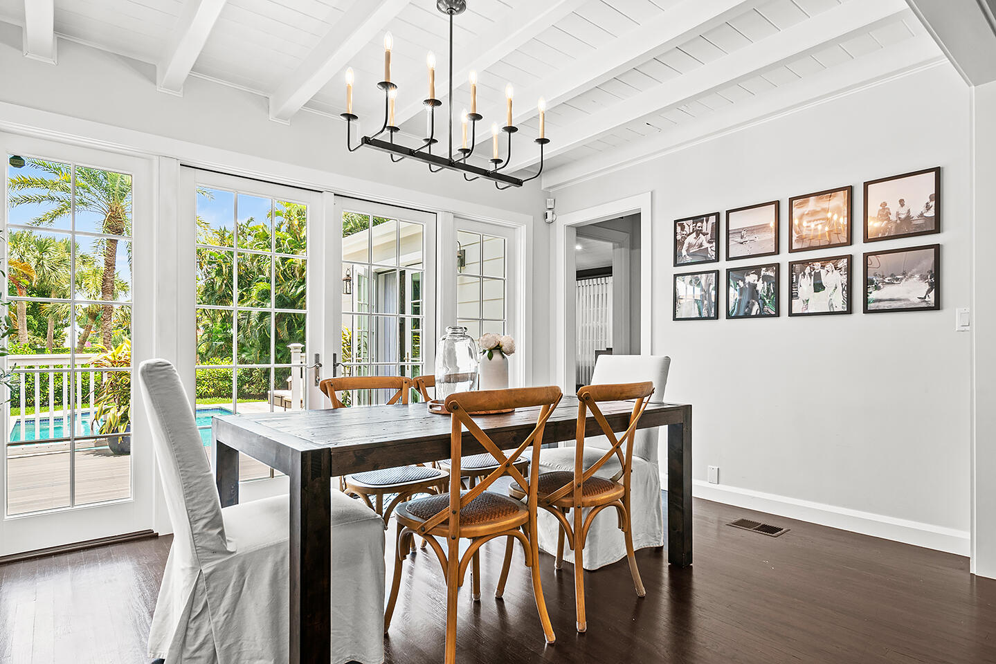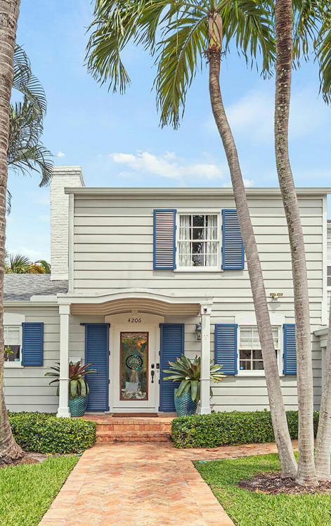 So, So, Charming! Step back in time when you arrive at this classic Palm Beach style 1930s island colonial home with the allure of yesteryear but all the updates for modern living in the popular South End neighborhood.Up the Chicago Brick pathway is the stately column-flanked covered entry with eyebrow arch and pecky cypress detailing leading to the colorful entry door with hand-painted glass inlays. Stepping inside you see the original hardwood floors stained a rich cocoa brown and enter the open living area which boast many historic details like wainscotting, decorative mouldings and a grand fireplace mantel. Such a lovely flow for entertaining with the living room spilling into the sunny open dining area that has a wall of French Doors and windows overlooking the pool and garden.