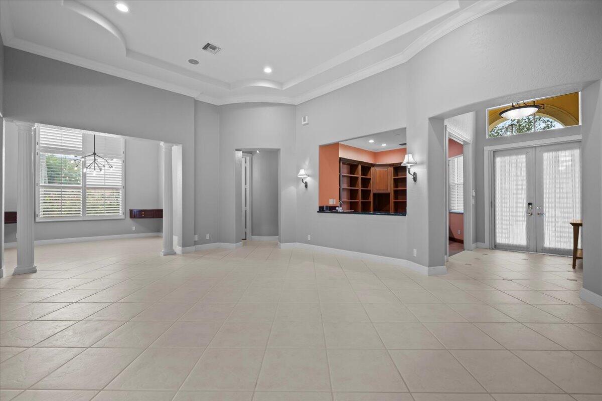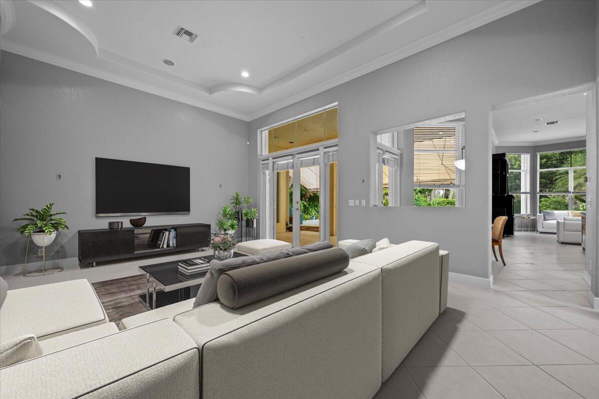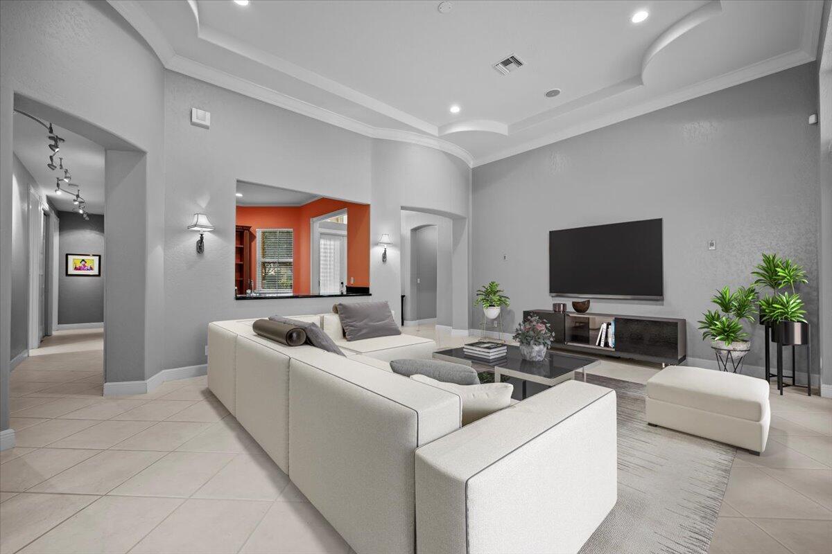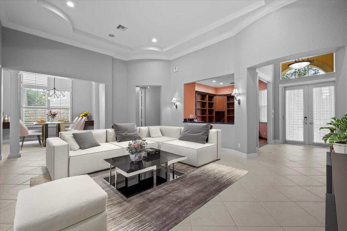 Golfer's Dream Home, Premier Location. Elegant 3Bed/2.5Bath Single-Level Pool Home is in a Rare & Desirable NON-MANDATORY, NO-TEE TIME Golf Course Community. Tucked at the End of a Cul-De-Sac with Expansive Views of the 10th Fairway. Sunlit, Spacious Floor Plan has 12' Ceilings with Crown Molding. Open Kitchen, Family Room, Separate Dining/Living Rooms + Den with Custom Built-In & Wet Bar. Large Owner's Suite + Sitting Area has Custom Closets & Wood Floors. Huge Fenced-In Backyard has an Extended Marble Patio, Motorized Screened Enclosed Lanai + Spacious Pool & Spa. Home Features Include; Accordion Hurricane Protection, House Generator, EV Charger, Plantation Window Treatments + 2.5 Car Garage. Ironhorse is a Guard Gated Country Club Community Minutes, to Shopping/Restaurants & Airport.
