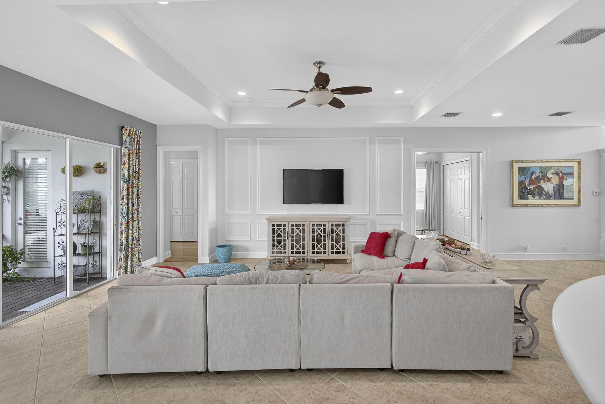 Enjoy Indoor/Outdoor living in this 3 Bed/2 Bath home filled with natural light. It faces the beautiful preserve in the front and the 9th hole of the Tradition golf course in the back. Special features include a 17X 28 saltwater pool (2020) travertine tiles and professional landscape for complete privacy. Pool pump (2025). The 3 bedrooms have hard wood floors, custom closets, new ceiling fans. GE refrigerator (2023), GE washer/dryer (2025). Hot water heater (2021). Hurricane protection. HOA includes cable/internet/security. Dog friendly community. The Club at Ibis is an award-winning community that boasts a 90,000 sq. ft. clubhouse, three 18-hole Nicklaus-family Championship golf courses, five restaurants, a world-class fitness complex and spa, tennis pickleball, bocce.