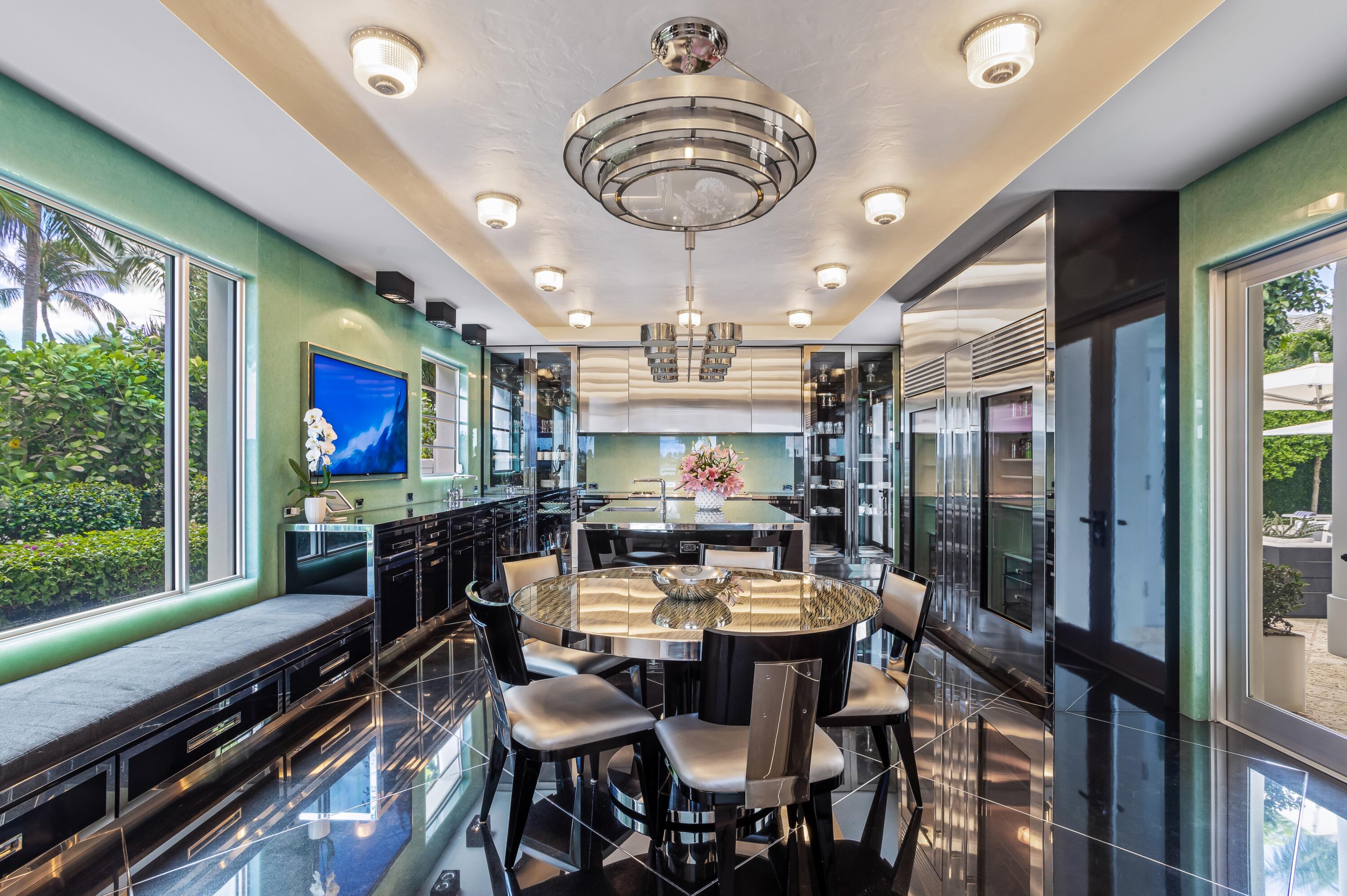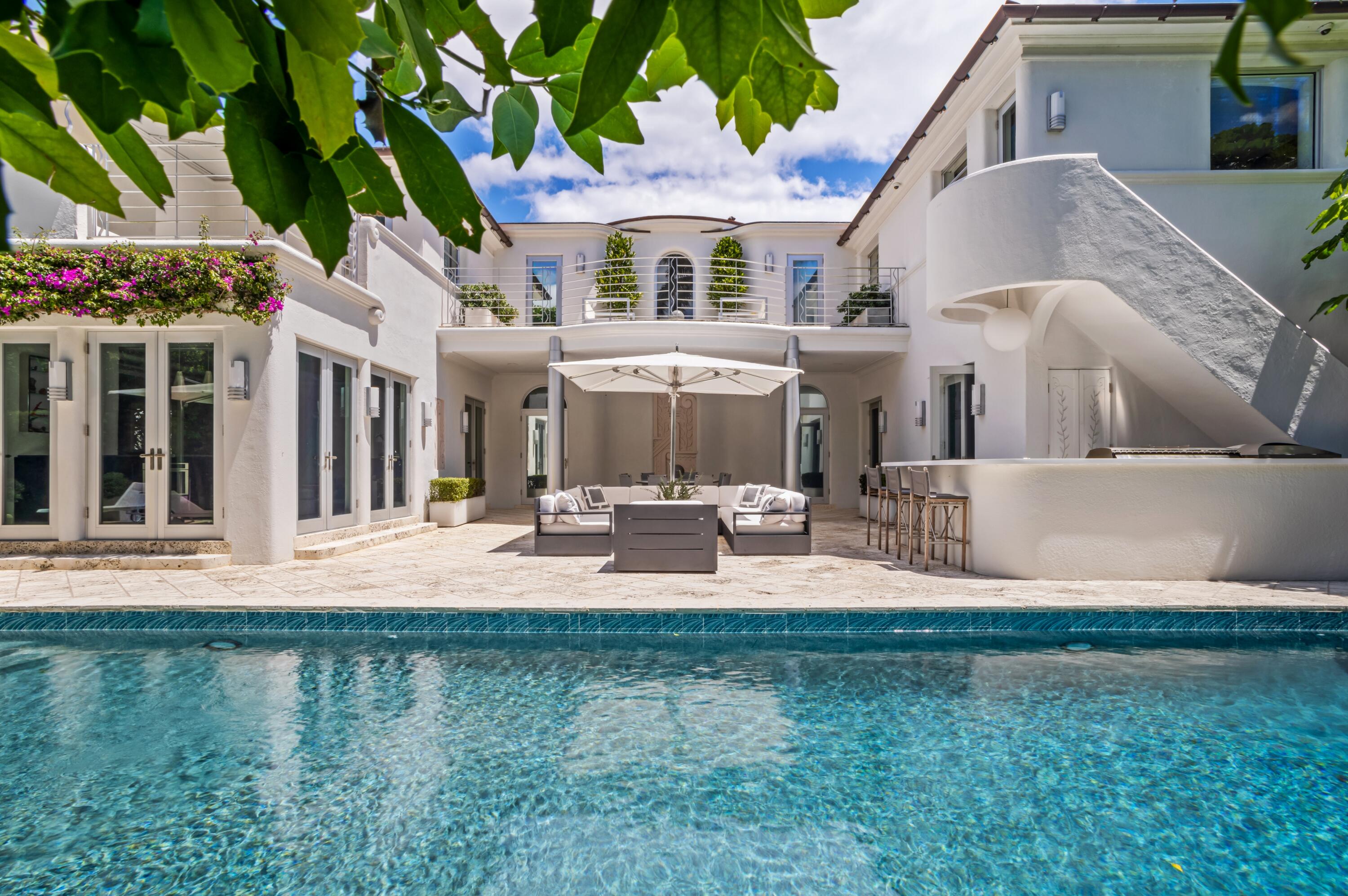 On the West Palm Beach waterfront this 1937 Belford Shoumate iconic architectural legacy beautifully bridges its nautical moderne heritage with today's modern luxury. Thoughtfully and comprehensively updated, the home retains its signature period details- including sea-foam green terrazzo floors, wavy ironwork banisters, a graceful circular staircase crowned by a domed ceiling frieze, and a curved fireplace-all blending historic artistry with contemporary sophistication. Steamship-inspired railings, a blue-tile-lined pool, and a scrolled stucco banister leading to a side entry complete the picturesque waterfront setting. Featuring 6 BR, 7.1 Ba, elevator, 3-car garage, and outdoor kitchen, this landmark property spans 23,836+/- SF of magnificence along the Intracoastal.