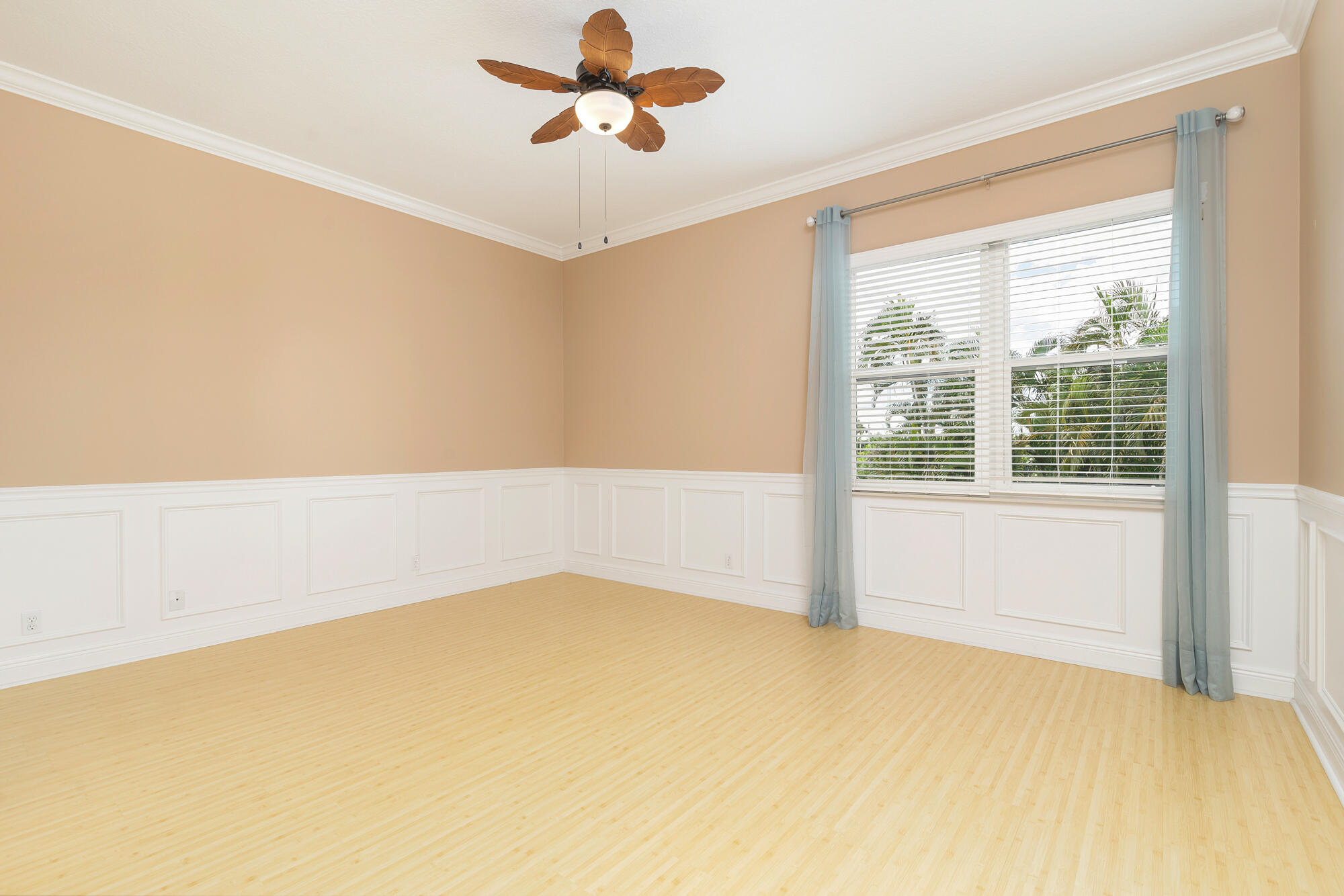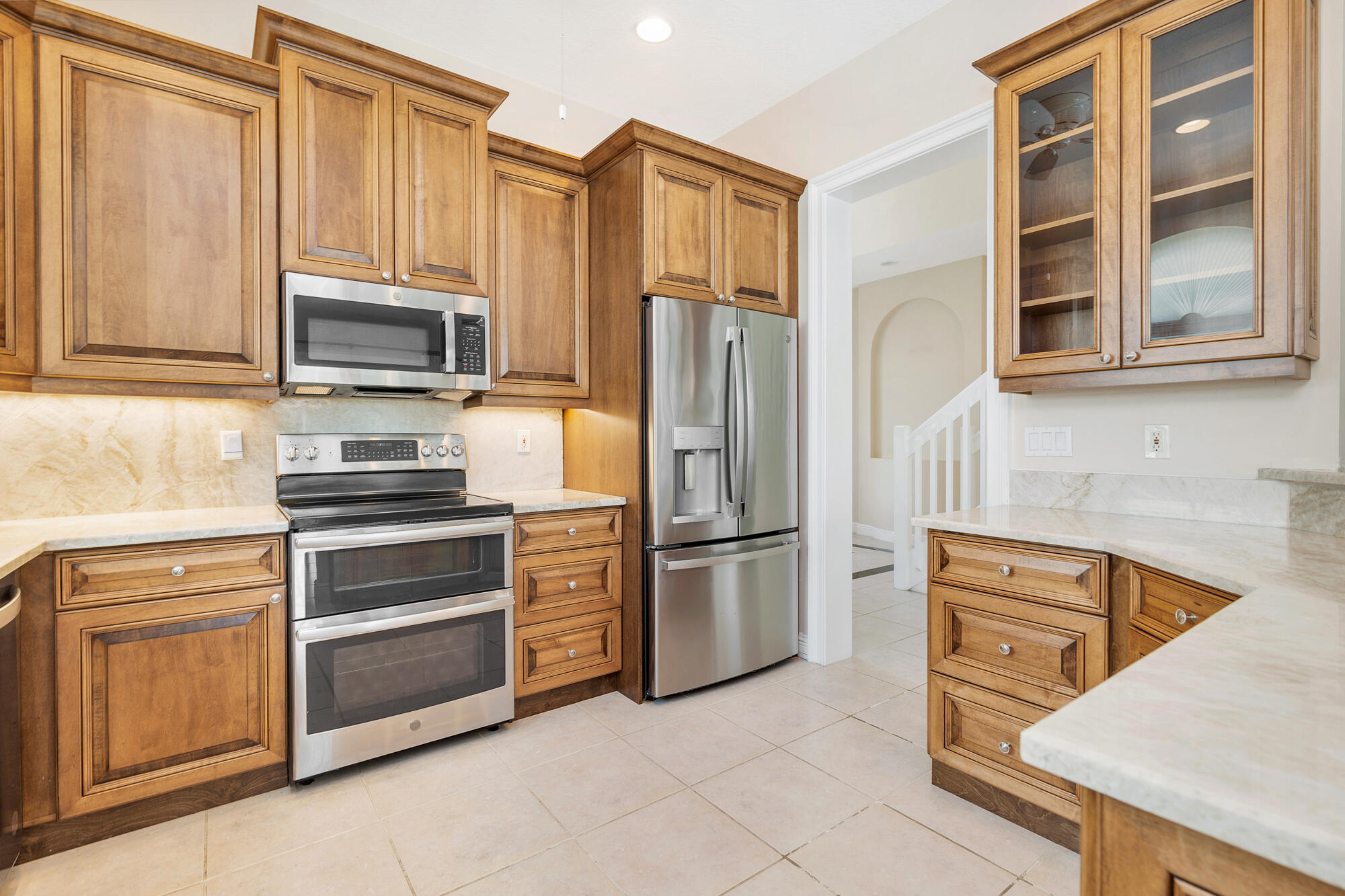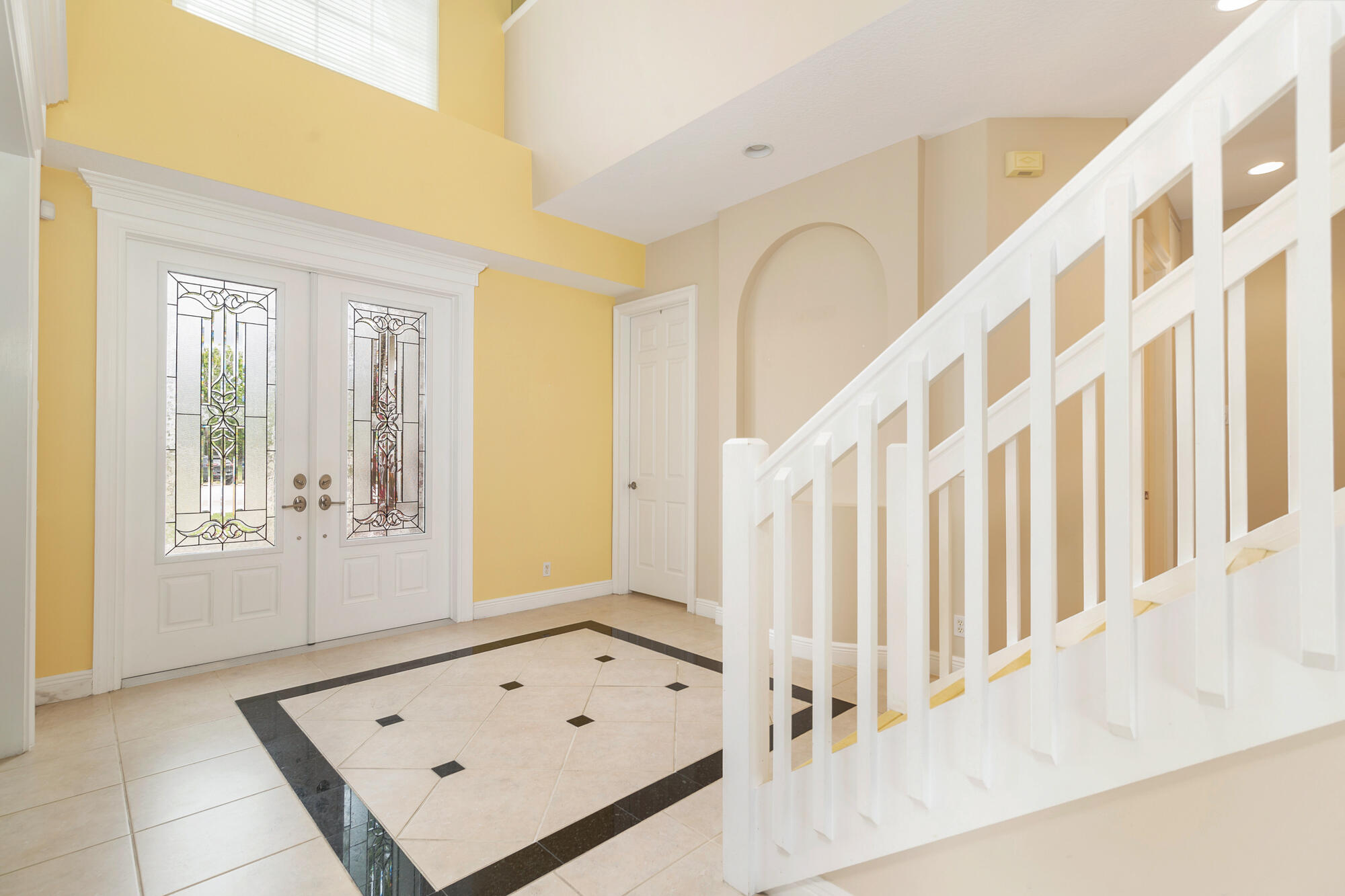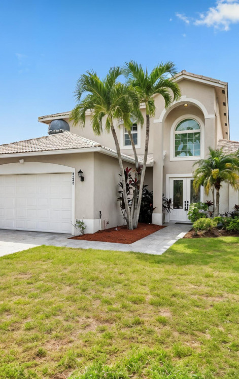 Bermuda-style home tucked within the peaceful Spray Cottages of Breakers West. Just 20 minutes from Palm Beach and a short drive to Wellington's premier equestrian venues, including the NPC and WEF. Ideally positioned on a quiet cul-de-sac with panoramic lake and Mayacoo Lakes Golf Course views, this residence offers high ceilings, impact glass windows, plantation shutters, and an updated kitchen with stainless appliances, granite counters, and a charming window over the sink. The first-floor primary suite includes dual vanities, a soaking tub, separate shower, and generous closets. Enjoy a screened pool, spa, and covered patio surrounded by tropical landscaping. Optional memberships available at Breakers West Country Club and Mayacoo Lakes Country Club.