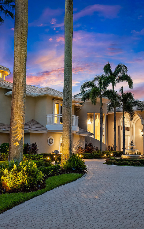 This Cribb-built custom masterpiece boasts a premium .58-Acre lot with private golf course access and is located within quick walking distance to the world-class amenities at the Club at Ibis. Location, Location, Location! With 200 FEET OF WATER FRONTAGE, this home offers breathtaking golf and lake vistas from numerous vantage points and balances privacy with incredible curb appeal. Its discrete location, nestled in the cul-de-sac, and its elongated private driveway and Romanesque fountain set the tone for the grand scale of this ICONIC IBIS ESTATE. With soaring ceilings and picturesque views throughout, this architecturally exciting, home has been designed to impress and pamper. The marble spiral staircase is a dramatic focal point, epitomizing estate luxury at its finest.