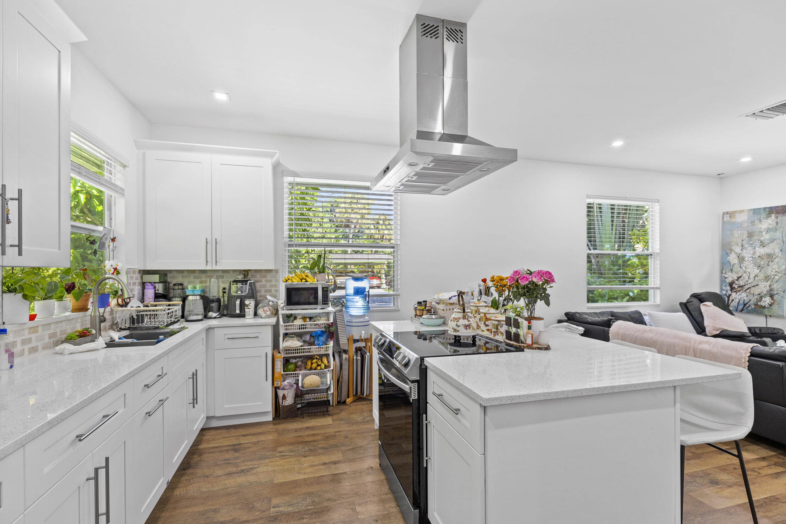 Experience luxury living at its finest! This remarkable estate welcomes you to a 1.50 acre lot through a gated grand entrance featuring a round driveway and a 4-car carport. Inside, you'll find 5 spacious bedrooms and 3 full bathrooms, an elegant entryway overlooking the formal living and dining rooms, and an open-concept kitchen that flows into a second living area with a cozy fireplace and picturesque views of the outdoor kitchen, sparkling in-ground pool, and private tennis court. Need extra space for guests? Enjoy a fully renovated 1-bedroom mother-in-law suite complete with a modern kitchen, living room, and inside laundry. Conveniently located near major highways, Wellington Green Mall, and nearby shopping plazas--this home combines comfort, elegance, and accessibility.