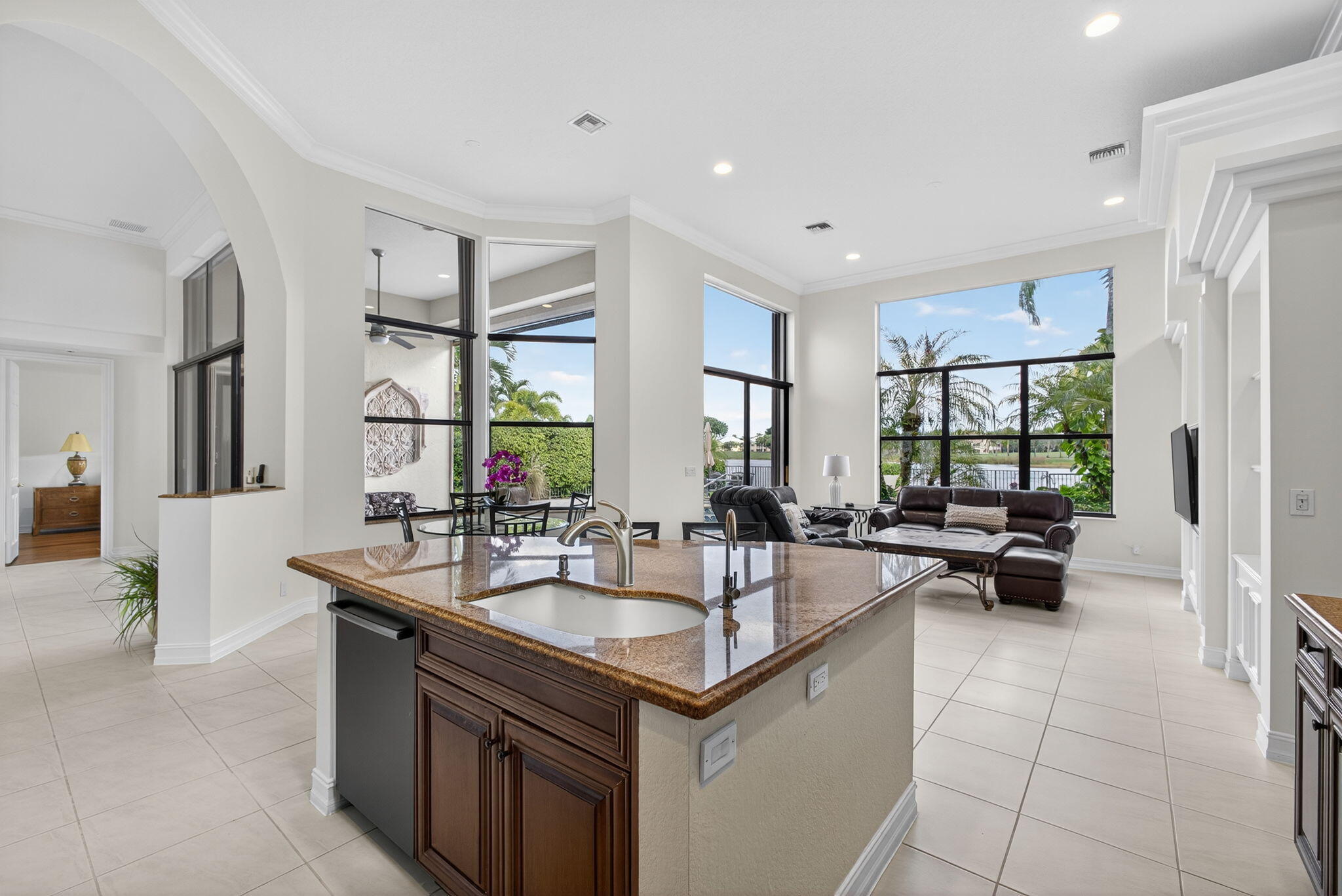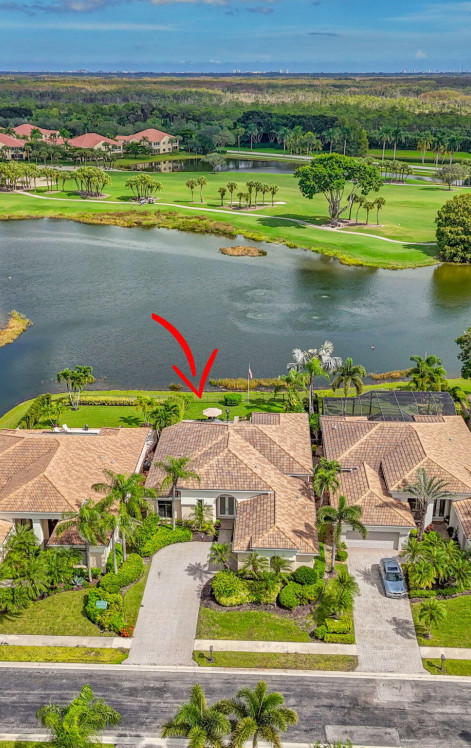 PREMIER GOLF MEMBERSHIP AVAILABLE! Enjoy spectacular water and golf course views from this bright and spacious 3 bedroom, 3 bath home featuring a private pool and spa. High ceilings, large windows and the desirable eastern exposure fills the living spaces with morning light, enhancing the home's open and airy feel. Step outside to the oversized patio & backyard...offering plenty of space for outdoor living, dining, and enjoying the serene lake and fairway views. Roof was replaced in 2018, freshly painted interior and the home is protected with accordion hurricane shutters. Beautiful home, spectacular views and Premier Golf Membership!