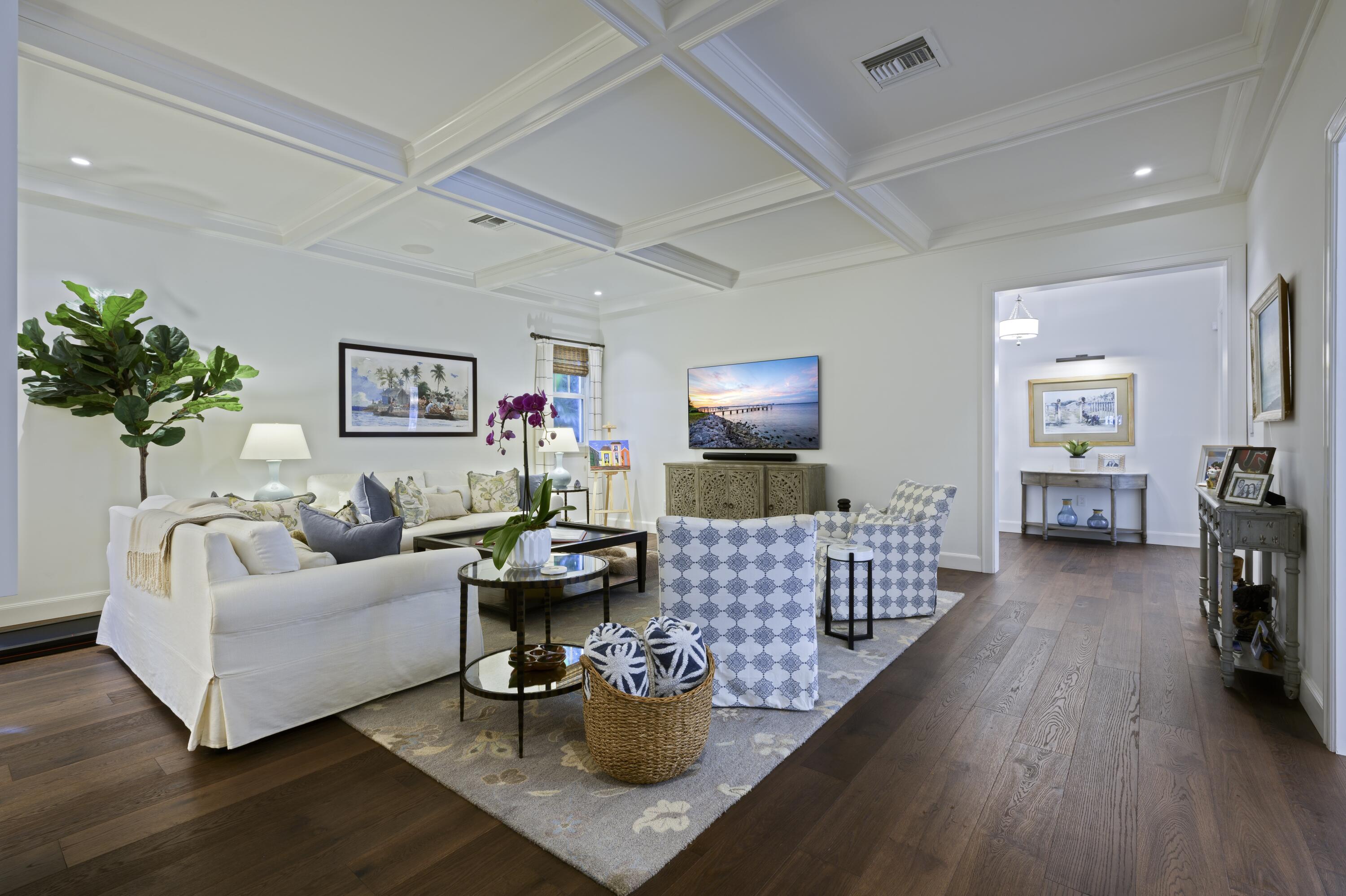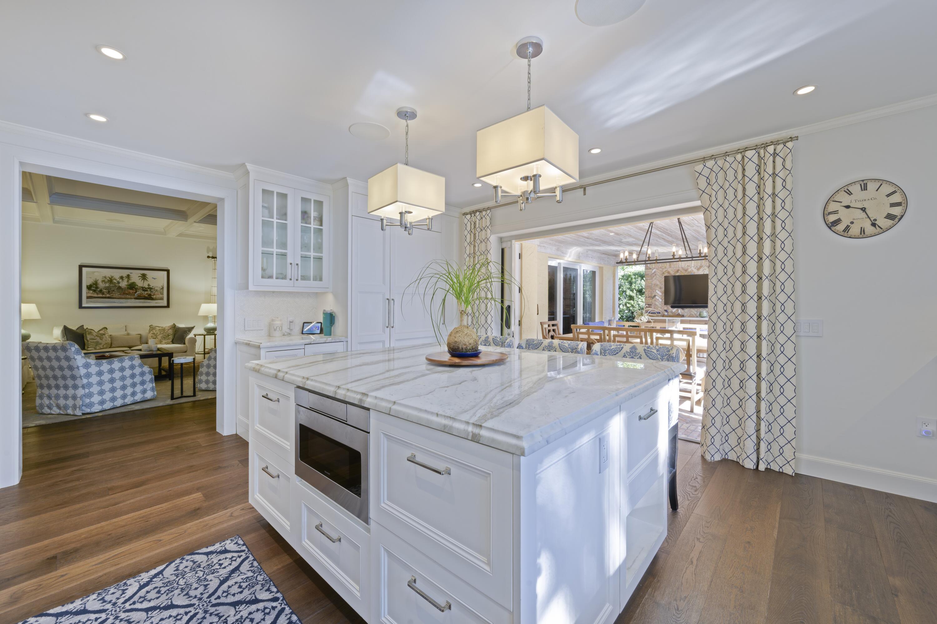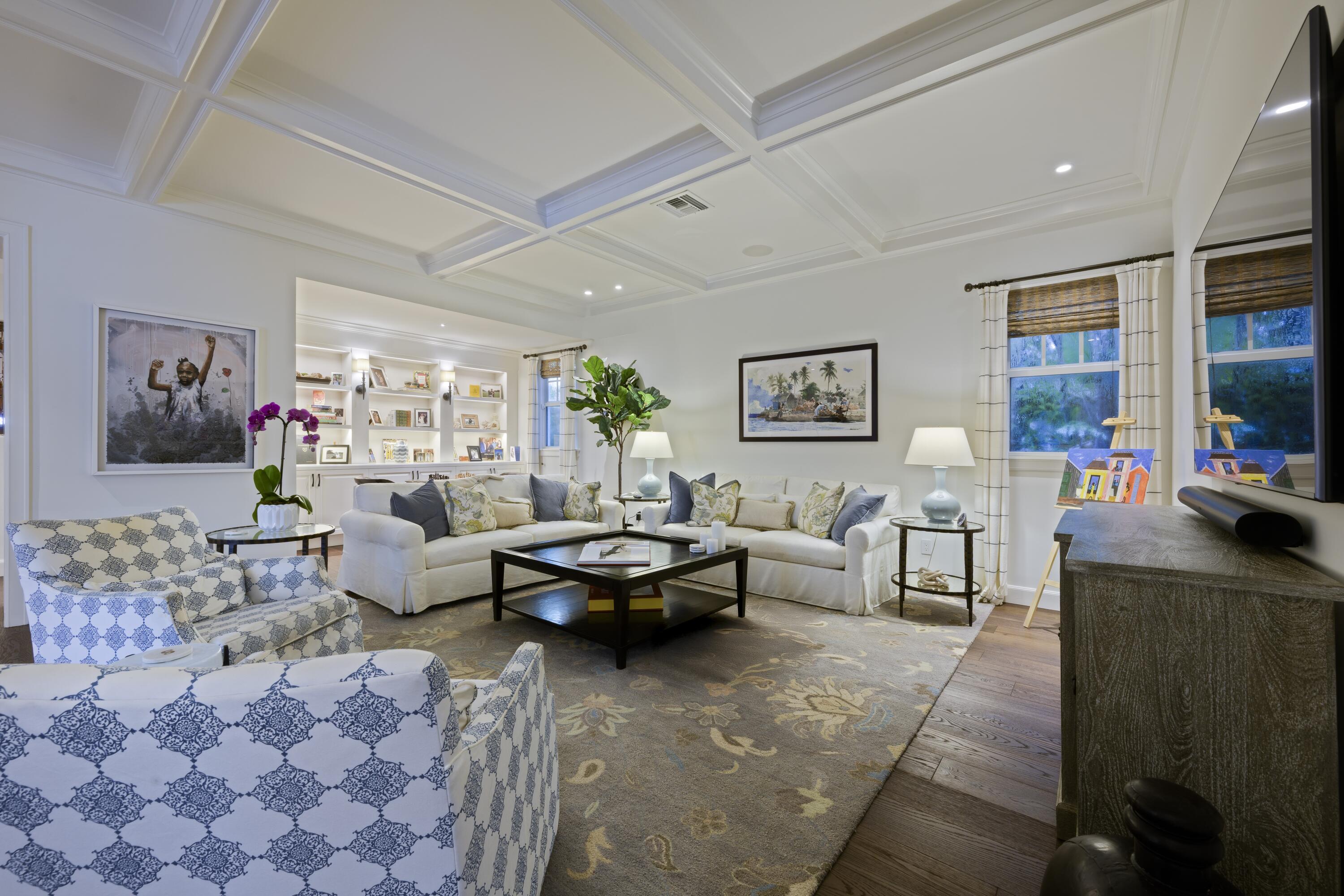 Set on one of the most prestigious streets South of Southern (SoSo), 245 Murray Road is a Spanish Mediterranean estate that has been completely reimagined by the renowned architectural firm Spina O'Rourke. Behind its custom pecky cypress front door, the residence unveils a grand living room with soaring 13-foot vaulted ceilings, dramatic pecky cypress beams, a marble fireplace, tongue-and-groove detailing, and wrought-iron accents that carry through the home. The formal dining room is equally captivating with its pecky cypress ceiling, chandelier, and oak hardwood flooring. Designed for entertaining, the main level offers a theater room, billiards lounge with a custom bar, and a warm family room that flows seamlessly into the chef's kitchen,