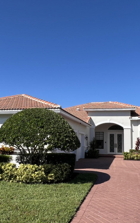 Exquisite 2 Bdrm. + Den, home features 12-foot ceilings with crown molding, elegant wood floors, and porcelain tile. The gourmet kitchen boasts stainless-steel double oven with convection, induction glass cook-top, wine cooler. Recent updates include interior and exterior paint, electric & manual window treatments, recess lighting, chandeliers and ceiling fans, door hardware and screened-in patio. The 760 sq. ft. garage has epoxy flooring. The premium lot offers stunning golf views and ample space for a custom pool.
