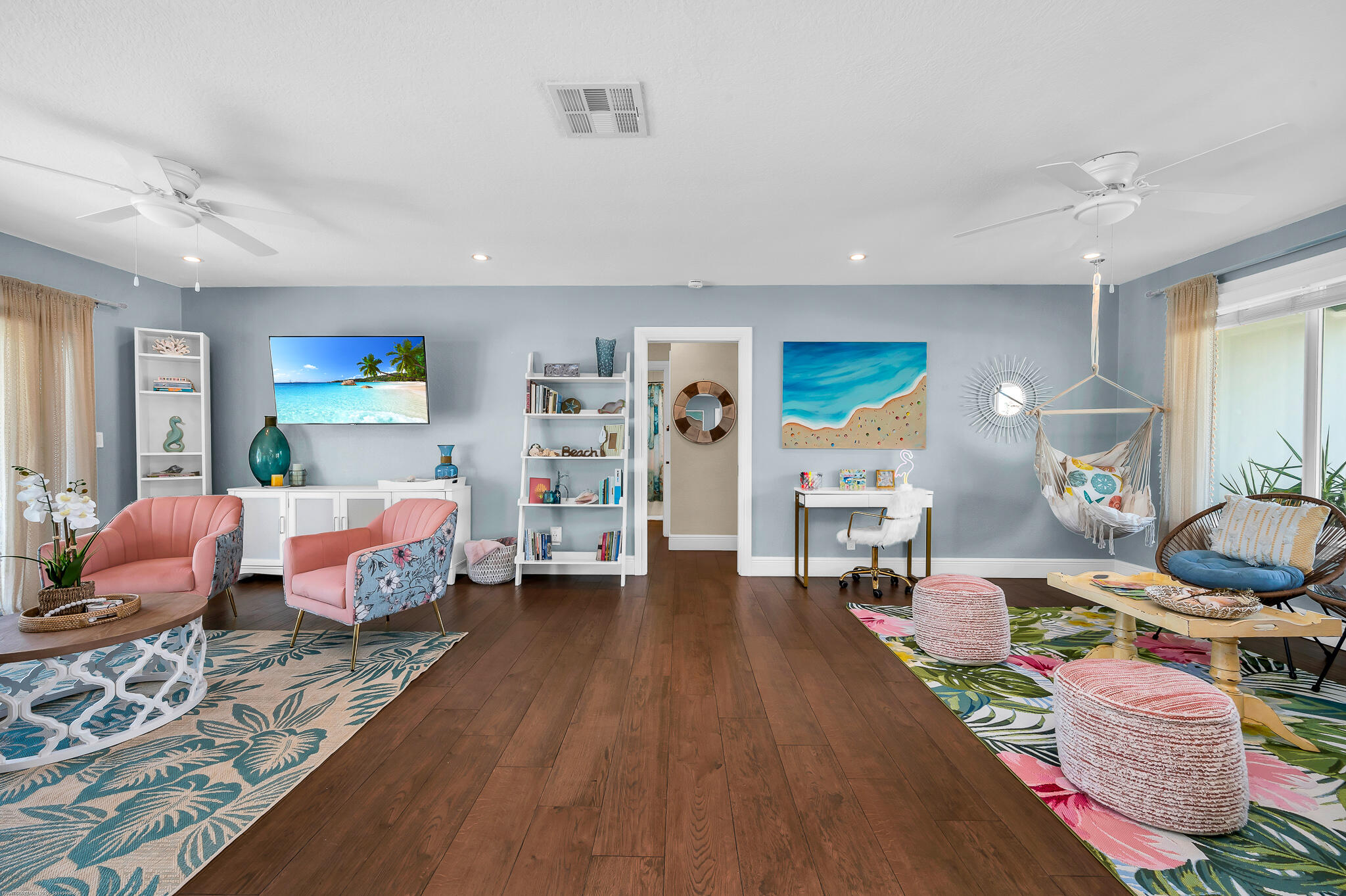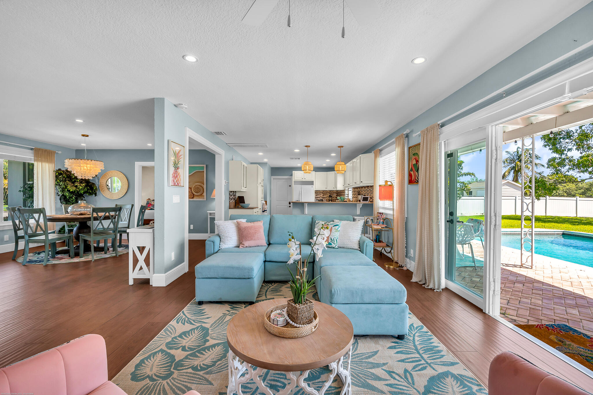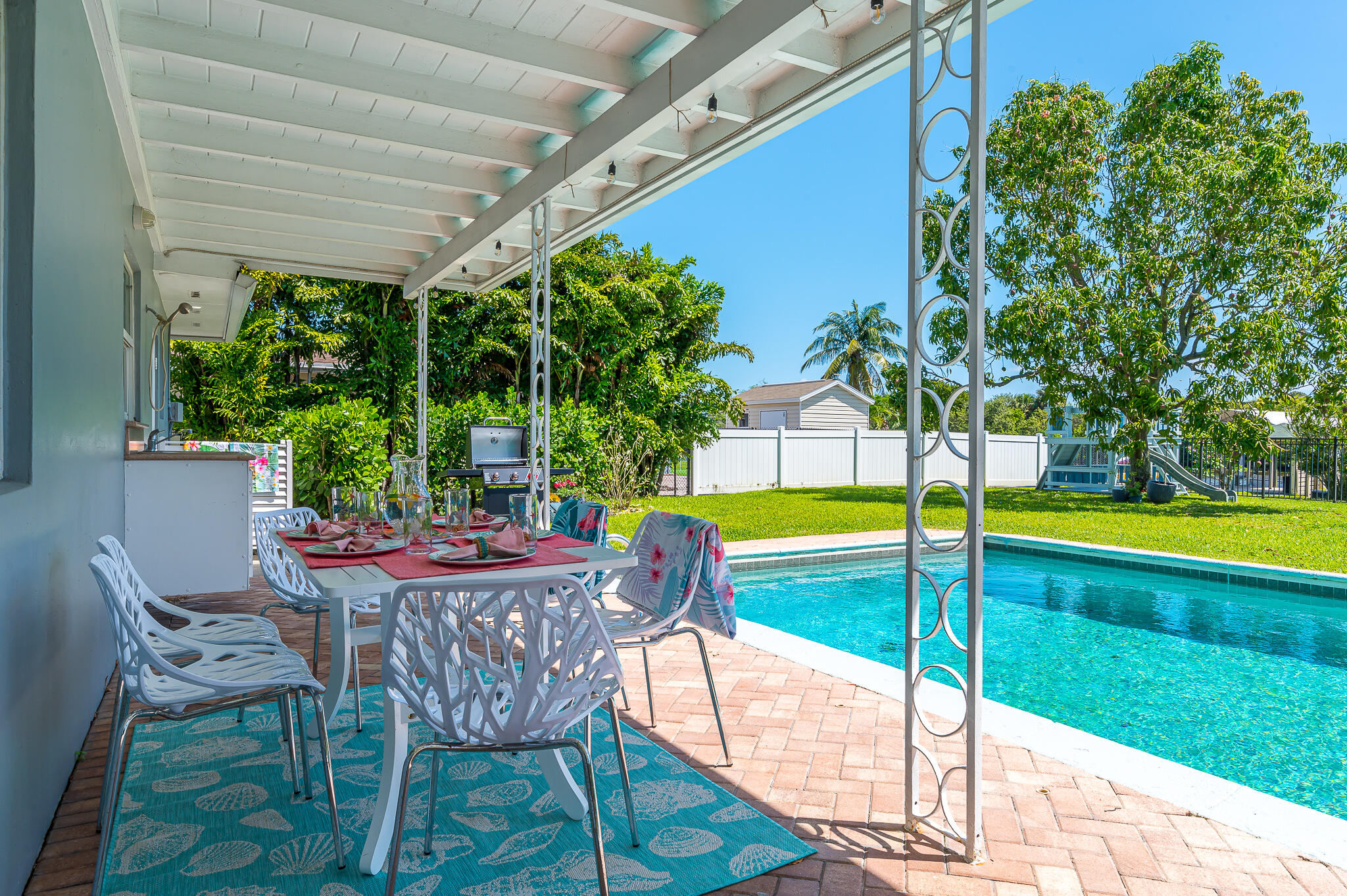 Situated on the wide water canal of Lake Clarke with a 10,400+ sq. ft. lot rests this uber charming 3 bedroom, 2 bathroom lakefront home. Boasting 2,599 sq ft under roof, this home has ample living space with most rooms overlooking the massive back yard, swimming pool and pristine lake. Featuring a fabulous white kitchen with natural gas appliances, whole-house generator, a large living room and separate dining area, this home personifies easy coastal living. Recently used as a short-term rental, this property also comes with fabulous business revenue that can be shared with a Buyer. Located close to I-95, PBI Airport, area beaches, fabulous dining and 5-star shopping. Lake Clarke Shores, the community, offers pickleball, tennis and basketball courts as well as children's playgrounds and