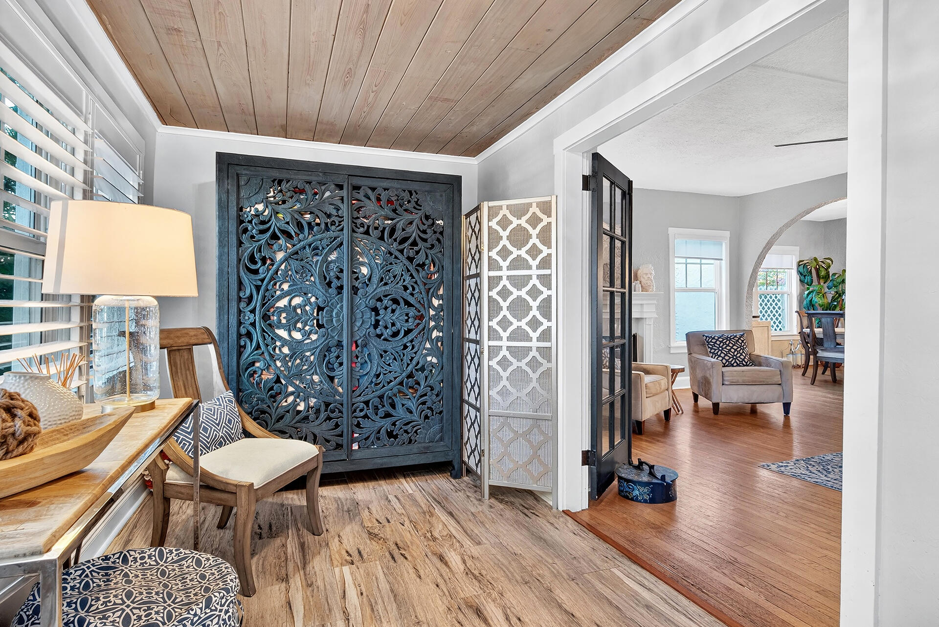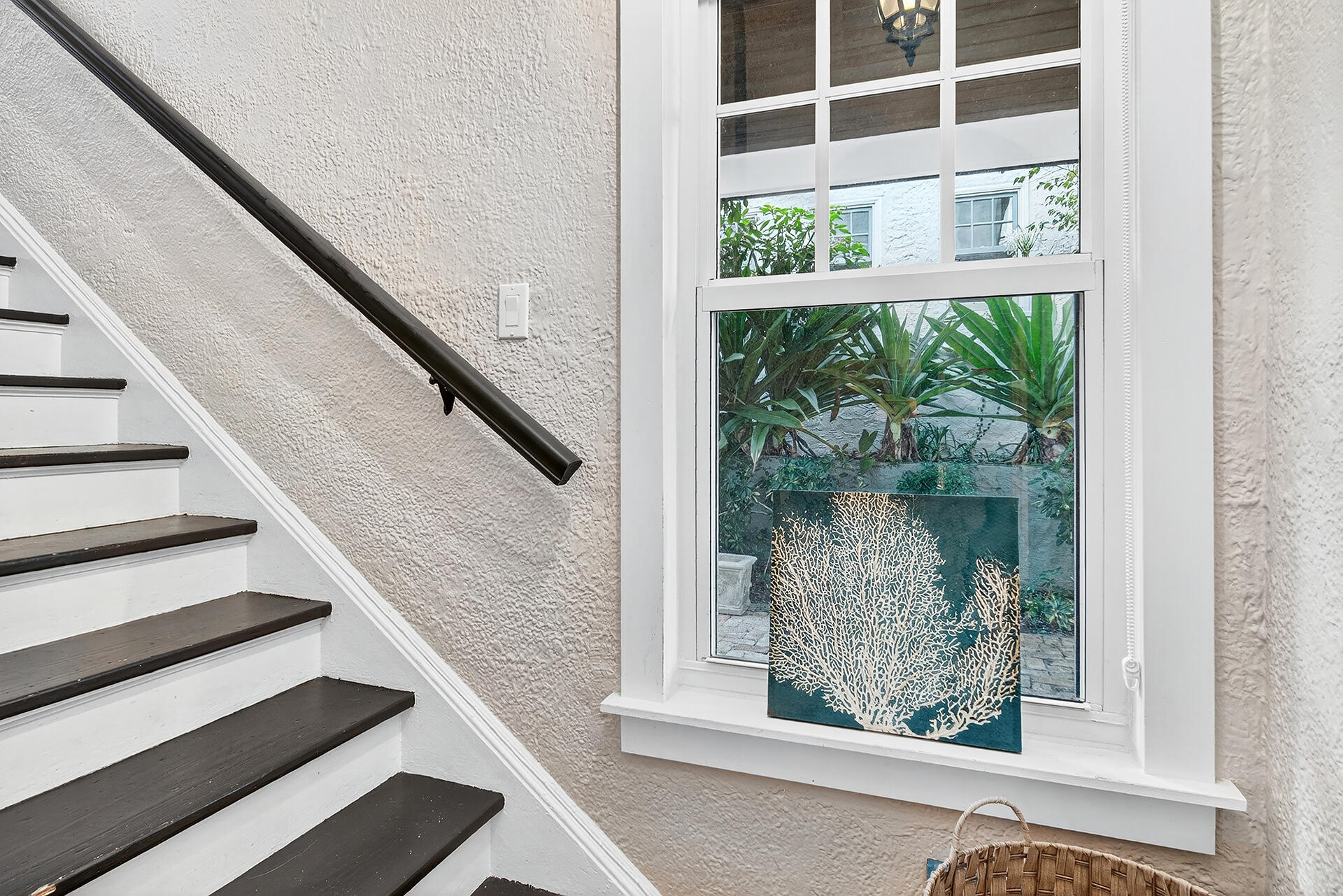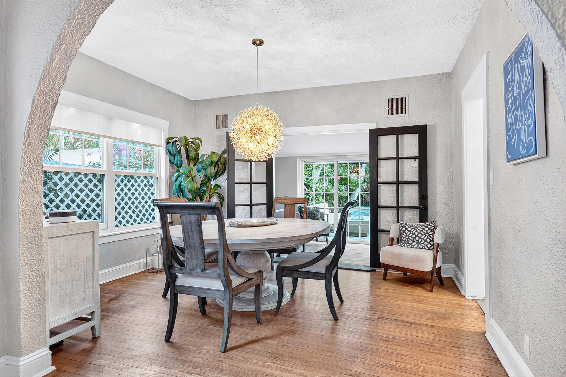 Welcome to 704 Claremore Drive in the heart of Flamingo Park. Built in 1925, this tranquil Spanish residence captures the grace of West Palm Beach's historic era while offering the comfort of modern living. 3 BD/2.5 BA Main House (Note: all 3 bedrooms are upstairs), a powder room/cabana bath downstairs, 2042 tsf/1834 under air, covered parking, a sunroom, a generous living room w/ original hardwood floors, high ceilings, wood-burning fireplace, charming dining room, updated kitchen, & cozy breakfast nook. Private backyard: mosaic-tiled, newly resurfaced, salt swimming pool & serene patio. 1 BD/1 BA Cottage (ground floor), 568 tsf, full kitchen. With impact windows, updates throughout & brick-paver driveway, this historic home offers a blend of period character & modern comfort.