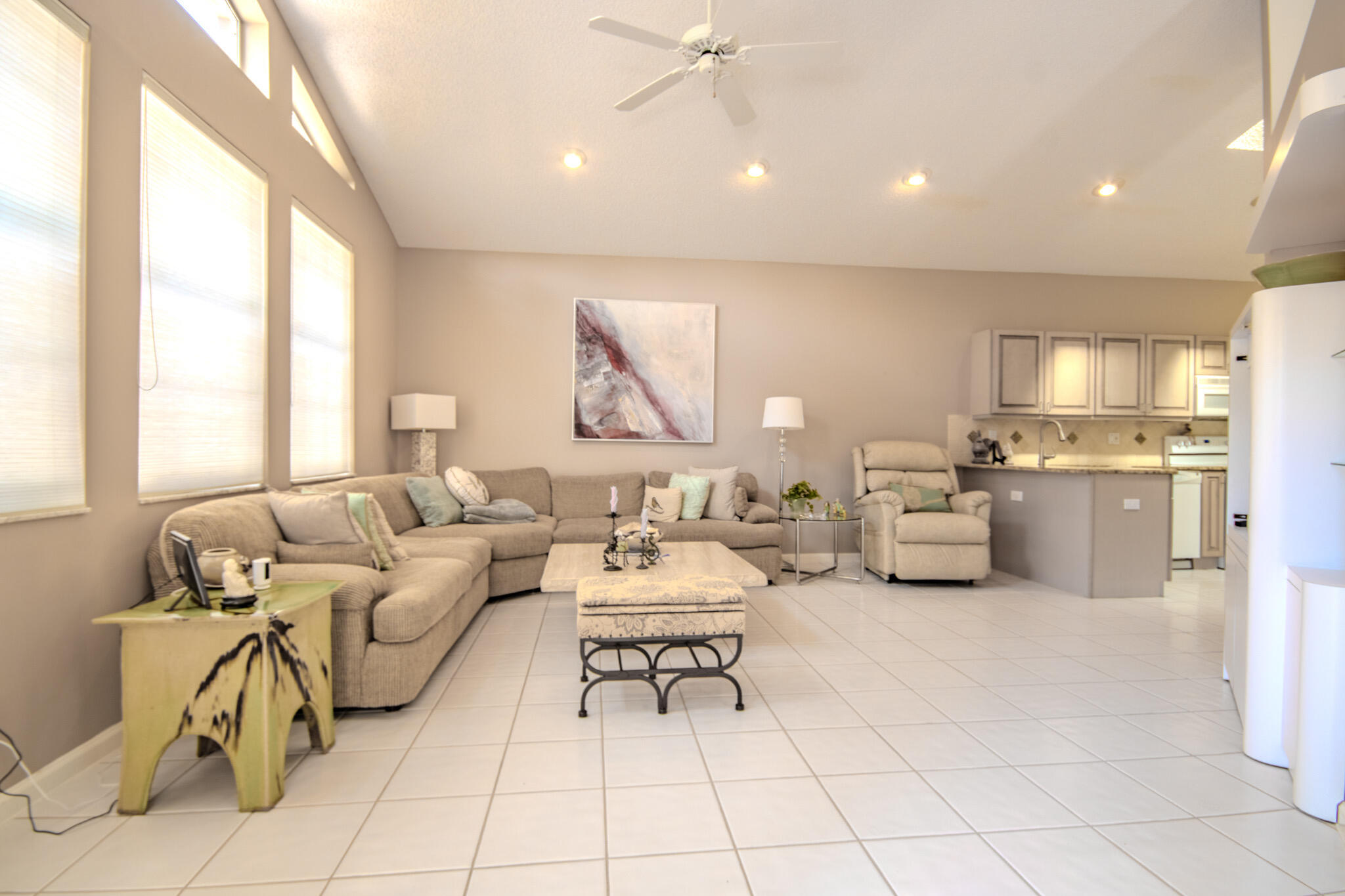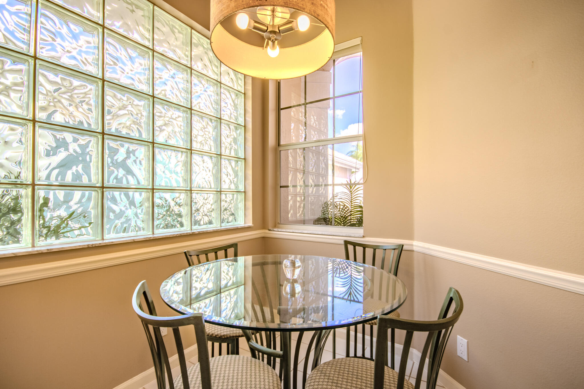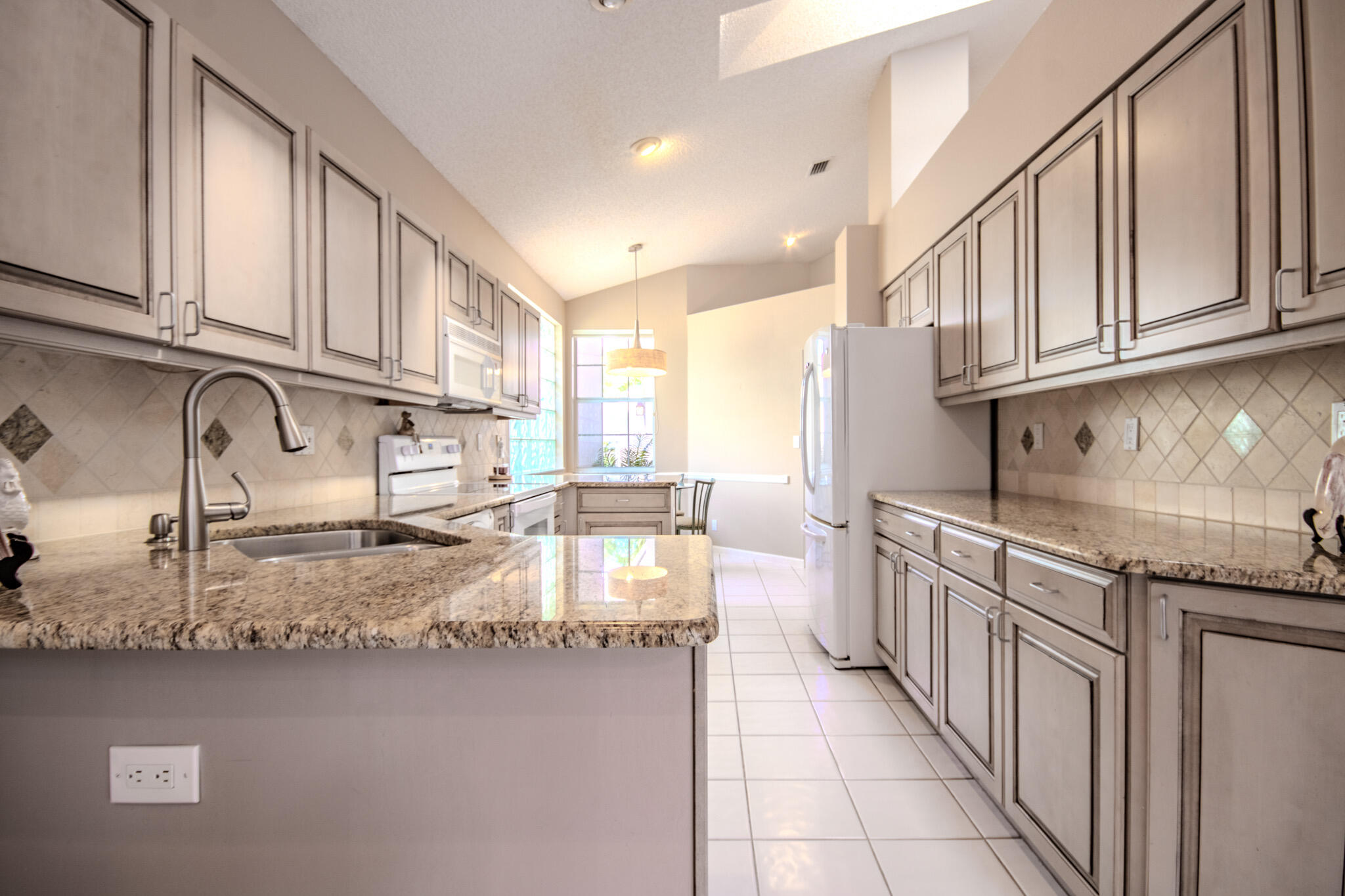 Experience the pinnacle of luxury in this stunning 3 bedroom, 2.5 bath home nestled next to Mayacoo Lakes 7th hole. The home is situated in prestigious Breakers West. The residence boasts an eat-in kitchen, spacious family room with built-in TV area and dry bar. The home has an expansive living and dining area, overlooking the private pavered patio designed with partial covered roof. Enjoy the convenience of an en-suite guest bedroom and interior washer and dryer. There is a oversized 2 car garage with laundry tub and recently installed water heater.