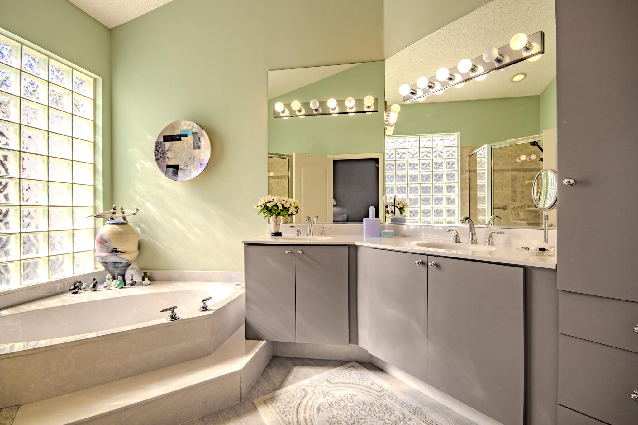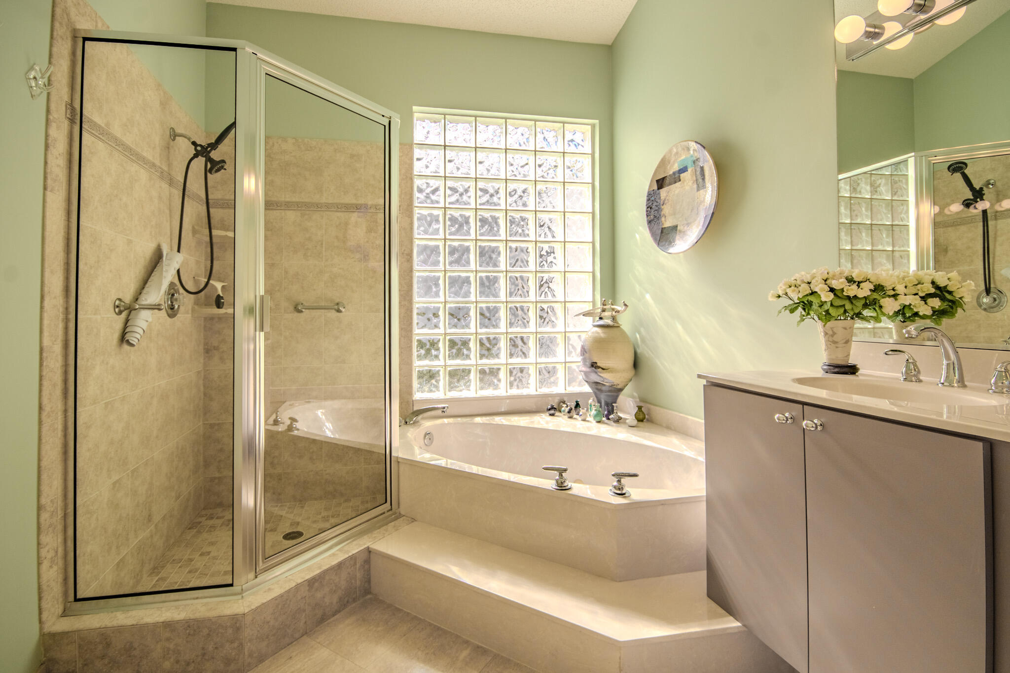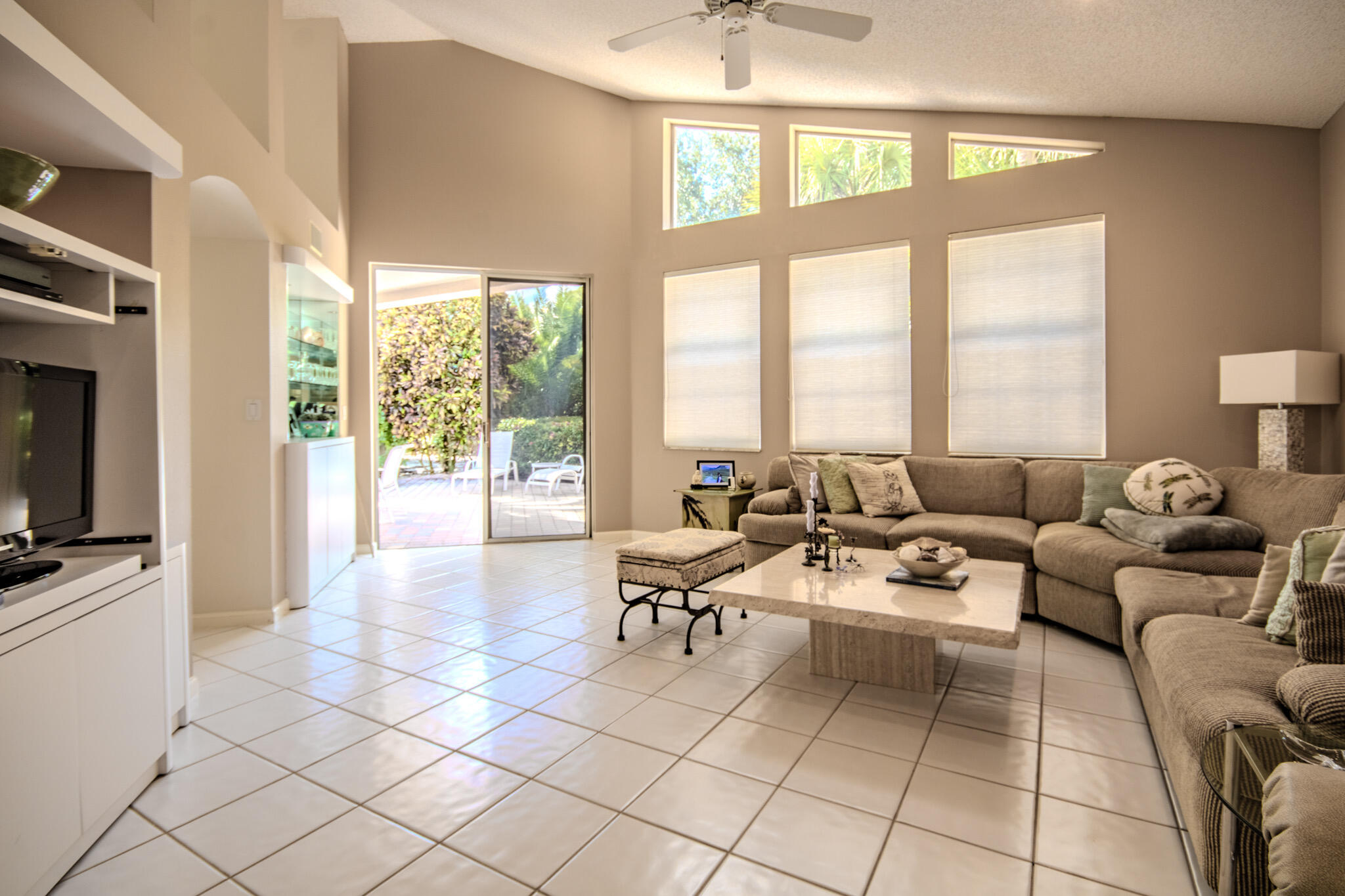 Experience the pinnacle of luxury in this stunning 3 bedroom, 2.5 bath home nestled next to Mayacoo Lakes 7th hole. The home is situated in prestigious Breakers West. The residence boasts an eat-in kitchen, spacious family room with built-in TV area and dry bar. The home has an expansive living and dining area, overlooking the private pavered patio designed with partial covered roof. Enjoy the convenience of an en-suite guest bedroom and interior washer and dryer. There is a oversized 2 car garage with laundry tub and recently installed water heater.