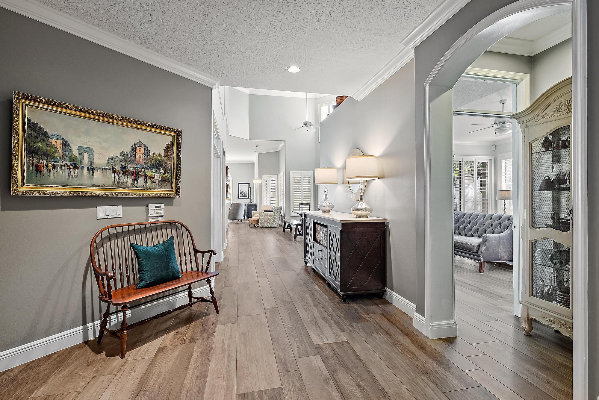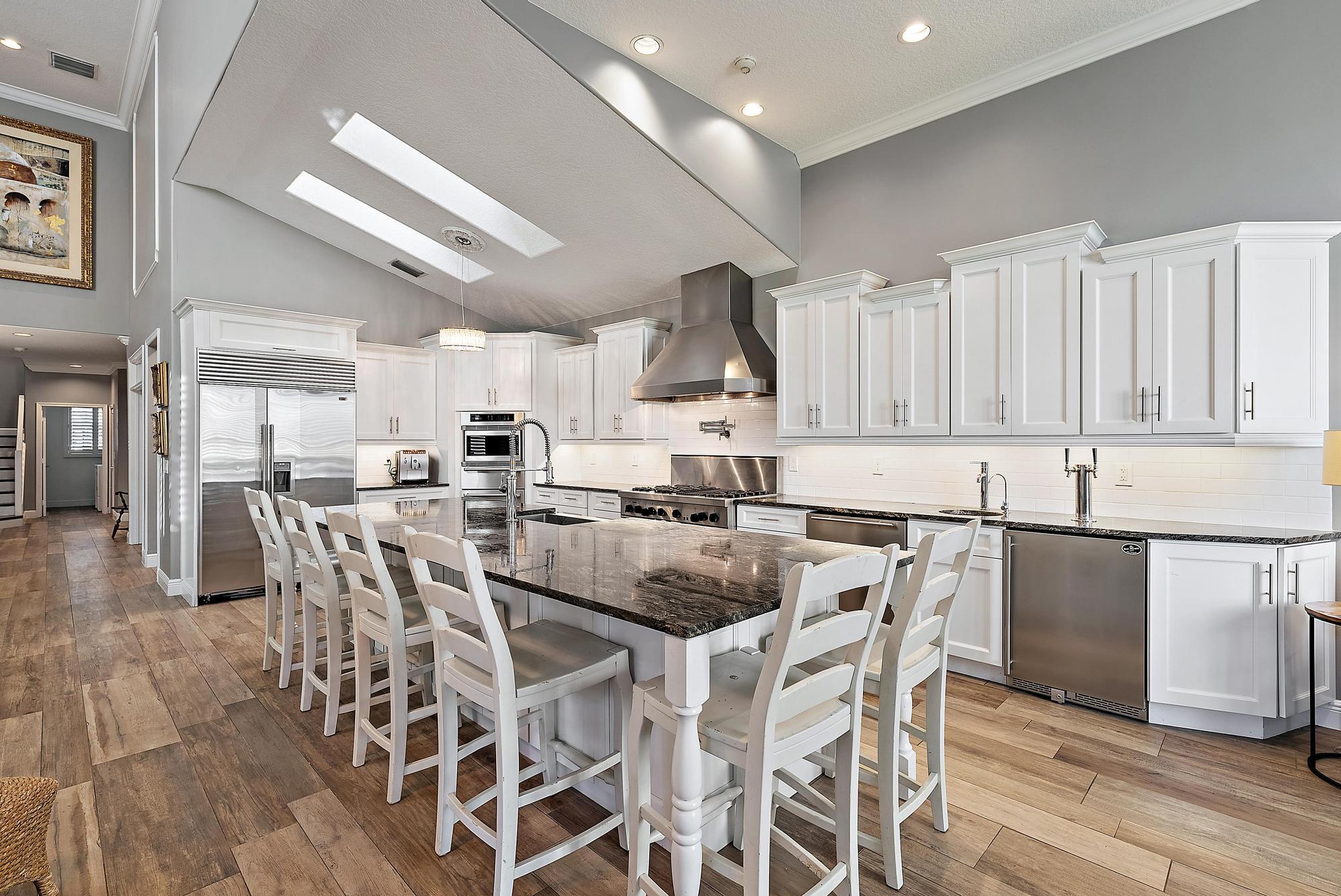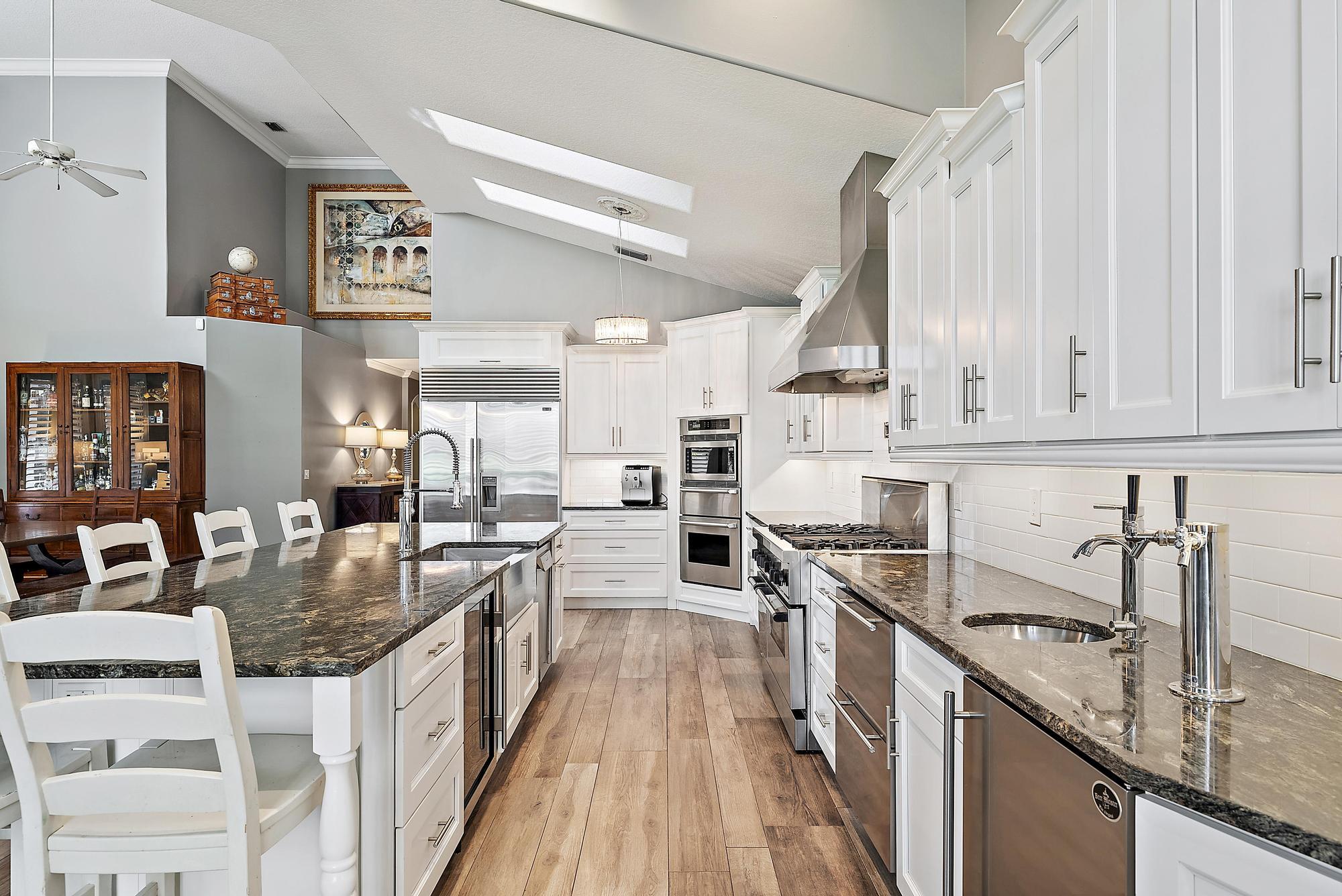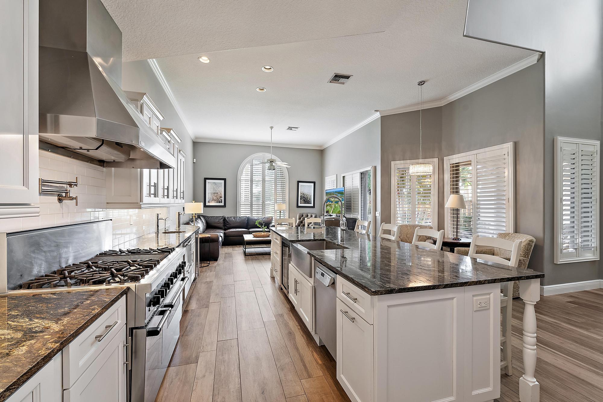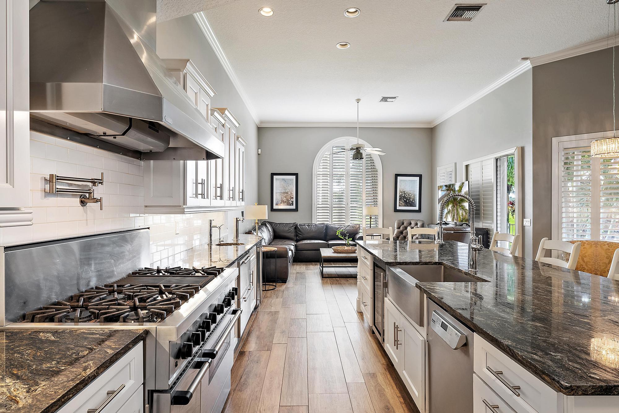 With long, sweeping views of the 2nd hole of the Nicklaus-designed Heritage Course, this upgraded and beautifully maintained Mahogany model in Osprey Creek offers exceptional value, modern luxury, and one of the most versatile floor plans in Ibis. Ideally located within walking distance to the Club and its world-class amenities, this residence blends timeless architecture with more than two decades of thoughtful, high-quality improvements. Inside, the home has been transformed with a series of top-tier renovations, culminating in a professional-grade chef's kitchen that rivals those found in luxury custom estates. The kitchen features a Thermador six-burner gas range with grill and double ovens, a Thermador microwave, warming drawer, and electric oven combo, a Sub-Zero refrigerator/