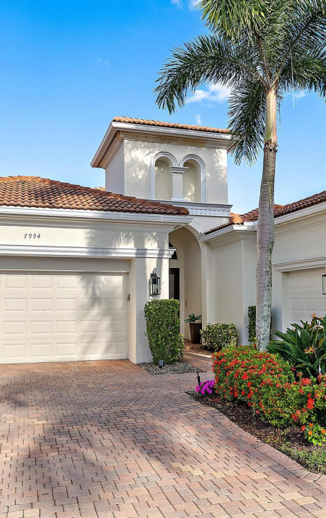 IMMEDIATE PREMIER GOLF MEMBERSHIP AVAILABLE WITH PURCHASE OF THIS HOME. Ideally positioned just moments from the world-class amenities of The Club at Ibis--easily reached by foot or golf cart--this exceptional Amalfi model sits on one of the largest lots in Villagio and offers a rare combination of convenience, privacy, and beautifully curated design. With 3BR/3BA + Den, this spacious, light-filled home lives effortlessly and elegantly, offering both gracious everyday living and the perfect backdrop for entertaining. A true great-room floor plan, the residence features soaring ceilings and a showstopping custom entertainment center with accent lighting--creating a dramatic focal point in the main living space. In 2017, the kitchen was completely reimagined with stunning Quartz countertops,