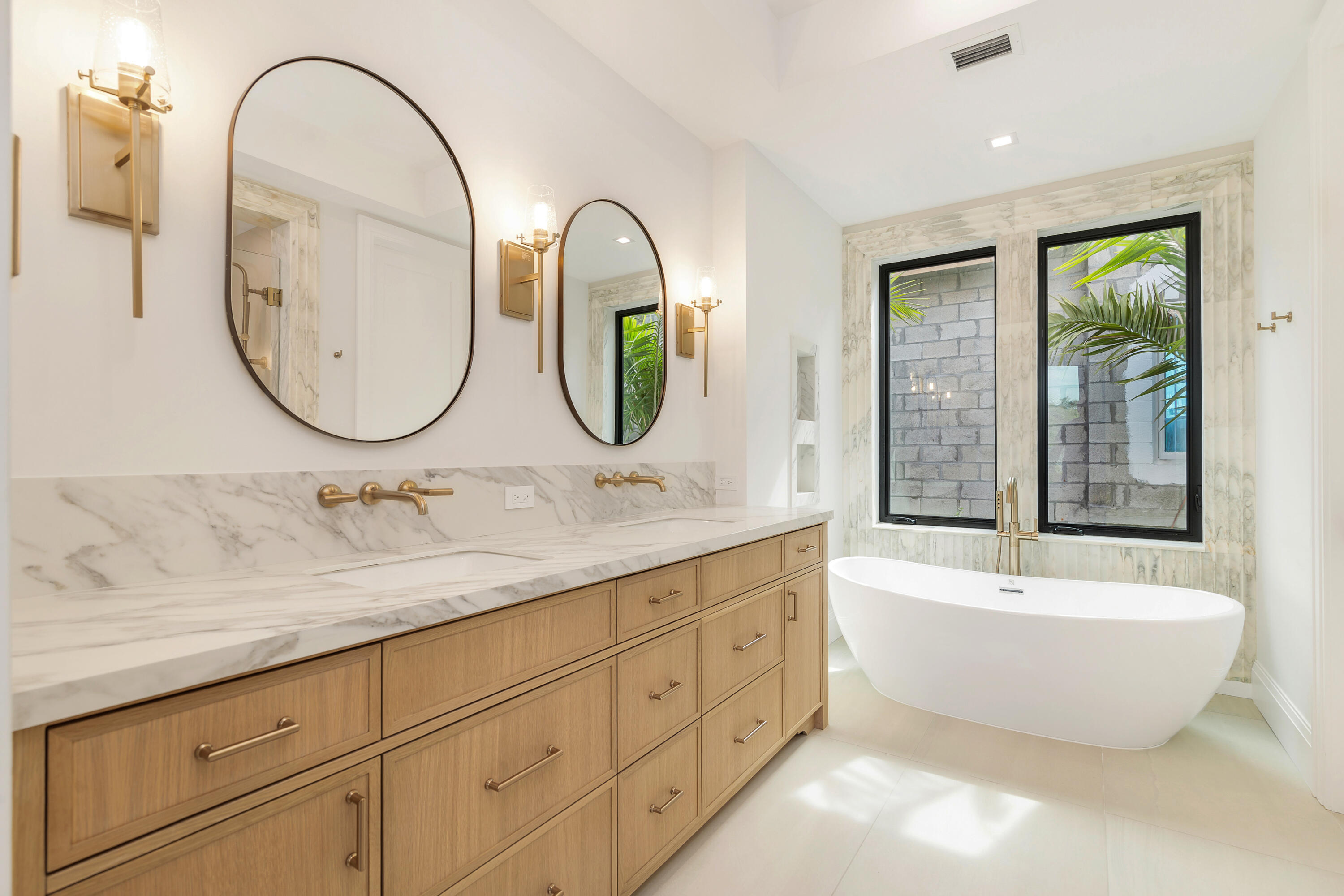 Where historic charm meets modern luxury, this almost entirely CBS home has 3,982 sq ft with 4 bedrooms plus an office/optional 5th and 4.5 baths. A 2025 re-imagination by developer Gus Renny, built by Steve Cury Construction and interior design by SMR Consulting that features wide-plank white oak floors, a designer chef's kitchen, spa-inspired baths, custom millwork, a marble fireplace, new plumbing and electrical and ES impact windows and doors. Enjoy resort-style living with a new pool, summer kitchen, and an oversized attached storage room. The home retains its historic designation and benefits from a rare 10-year tax abatement. Located in within the coveted Palm Beach Public school district in prestigious Southland Park near beaches, Flagler Drive, fine dining, PBI and Worth Avenue.