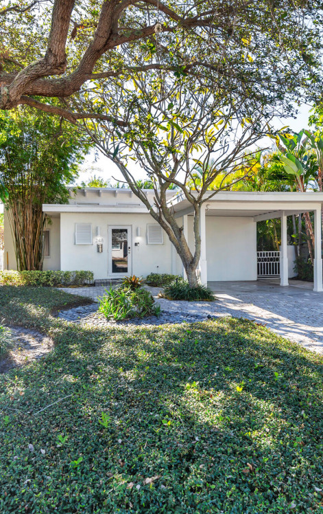 Mid-century modern style in the heart of SoSo! Welcome to 248 Cortez Road, an updated and stylish home with a lovely pool that is east of Olive in the Southend of West Palm Beach on a through-street to Flagler Drive and the Intracoastal Waterway. You enter the home into a gorgeous open living room with soaring ceilings with exposed wood beams. Natural light floods the room, and details include the original hardwood floors, French Doors and a floor plan that is perfect for entertaining.248 Cortez boasts a seamless indoor / outdoor flow to the pool area, PGT hurricane impact windows and doors, a two-zone air conditioning system (installed 2021), and upgraded dimmable lighting to create the perfect ambiance.