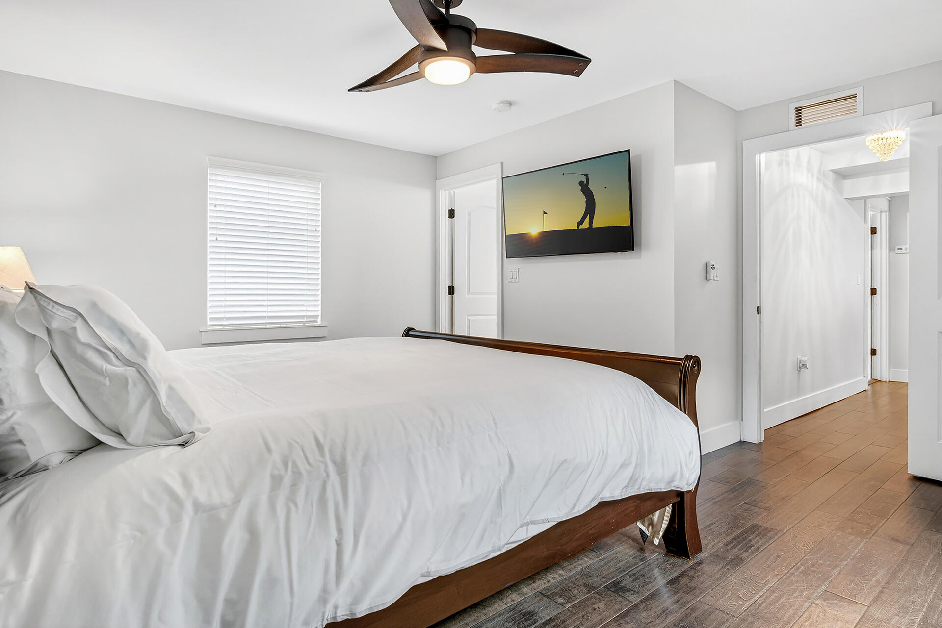 You get the best of both worlds with this classic 1940s Spanish Style home in Prospect Park with old world styling but all the updates for modern living! The main house is spacious with 4 bedrooms and 2 1/2 baths, including a convenient first floor primary suite with walk-in closet, roomy ensuite bath with dual sink vanity and oversized shower, and French Door to private landscaped patio. Unusual for the area, this compound also includes a true two-car garage that is free standing behind the main house with space enough for two cars plus workshop areas. Above the garage is the perfect guest cottage with open living area, 1 bedroom, 1 full bath and a balcony overlooking the backyard. This lot is spacious - over 8500 square feet - with space to play or entertain and plenty of room for a pool