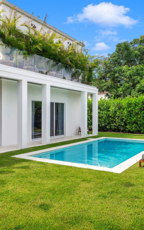 Experience refined modern living in this impeccable new-construction home featuring four bedrooms, four and a half bathrooms, a large two-car garage, and a resort-style pool. Sunlit interiors with lofty ceilings showcase designer-selected finishes, from the custom wall coverings to the chef's kitchen appointed with premier appliances. Each ensuite bedroom offers a serene retreat with spa-inspired baths. Expansive walls of windows seamlessly connect the interiors to the lush outdoor surroundings, creating a tranquil, sanctuary-like atmosphere throughout.