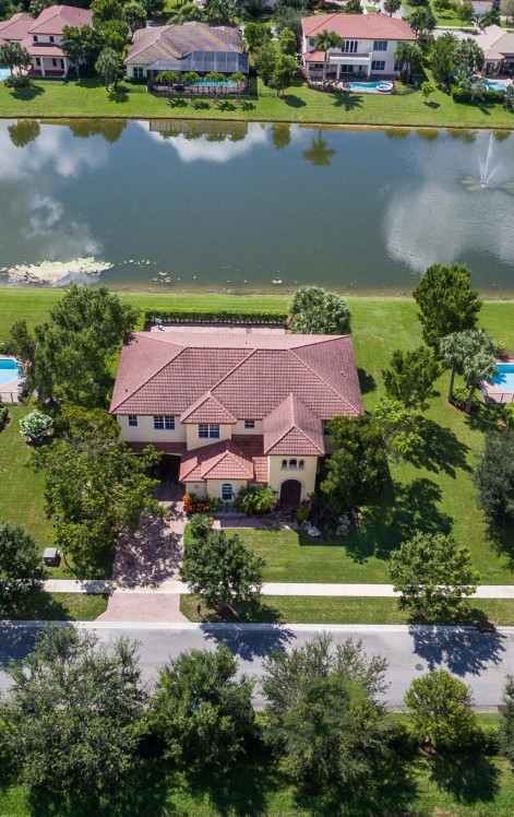Stunning modern 6 bed/ 6bath lakefront pool home LOADED with recent upgrades, lush landscaping, soaring volume ceilings, spacious living areas, and tons of natural light. WoodsLanding is a boutique neighborhood with only 24 homes tucked behind secure gates and offering large lots. The freshly painted home boasts all impact windows and doors, large format porcelain tile floors, renovated kitchen and appliances, fully renovated bathrooms, crown molding, custom glass enclosures, new lighting fixtures/sconces inside and out, New AC's and water heater, whole home Generac generator, summer kitchen, and so much more! The pool has recently been resurfaced, had all new decking installed, and major equipment has been replaced.Ideally located in close proximity to the Wellington Equestrian Area,