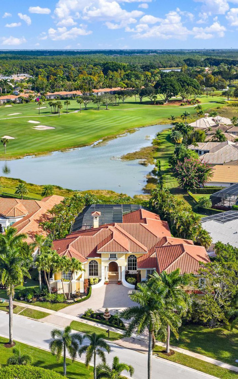 Perfectly positioned on a half-acre lot just moments from the main gate and premier amenities of The Club at Ibis, this stunning custom estate offers timeless architecture, thoughtful design, and sweeping long water and golf course views overlooking the fairway of the Nicklaus-designed Legend Course #6. Adding immediate peace of mind, the roof was replaced in 2022, complementing the home's exceptional scale and enduring quality. Encompassing 5,915 square feet under air and 7,565 total square feet, the residence features four bedrooms, four full baths, three half baths, a private office, a theater/game room, and a 3.5-car garage. Designed for effortless living, all primary spaces--including the owner's suite, three spacious guest suites, and den--