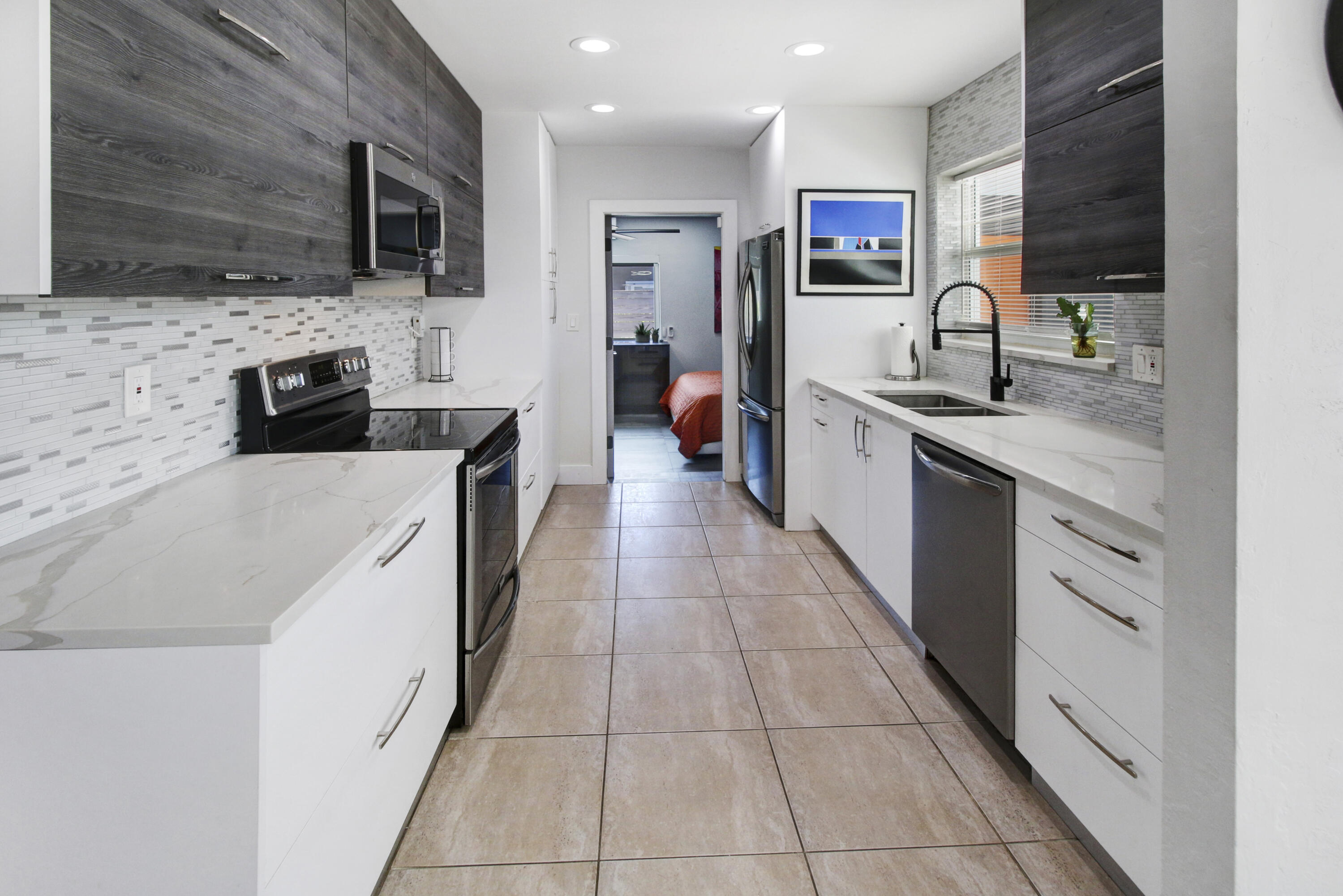 Welcome to this one of a kind, 4 bd 3 full bath home in sought-after Coral Point. Perfect layout for entertaining, spacious living area has a full bar with wine fridge which compliments the gorgeously remodeled kitchen w/quartz counters. Two separate primary suites, one of which has its own direct entry and 3 of the 4 bedrooms exit directly to the resort style back garden with lush tropical landscaping. Heated saltwater pool/jacuzzi with multiple seating areas perfect for outdoor gatherings. New roof 2023, all new underground pvc plumbing, impact windows and doors, 2019 HVAC replacement, and solar panels round out the quality updates given this home by its owners.